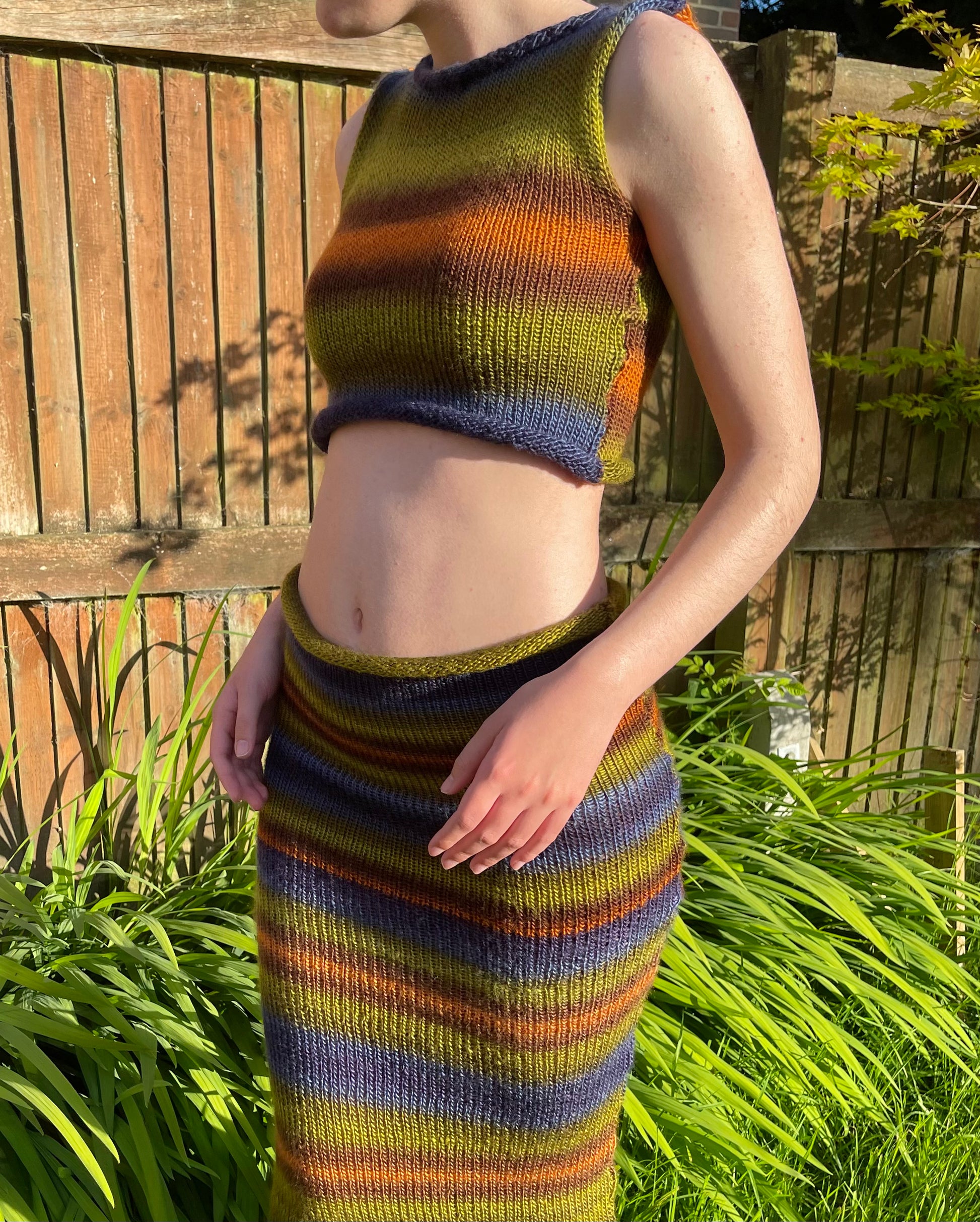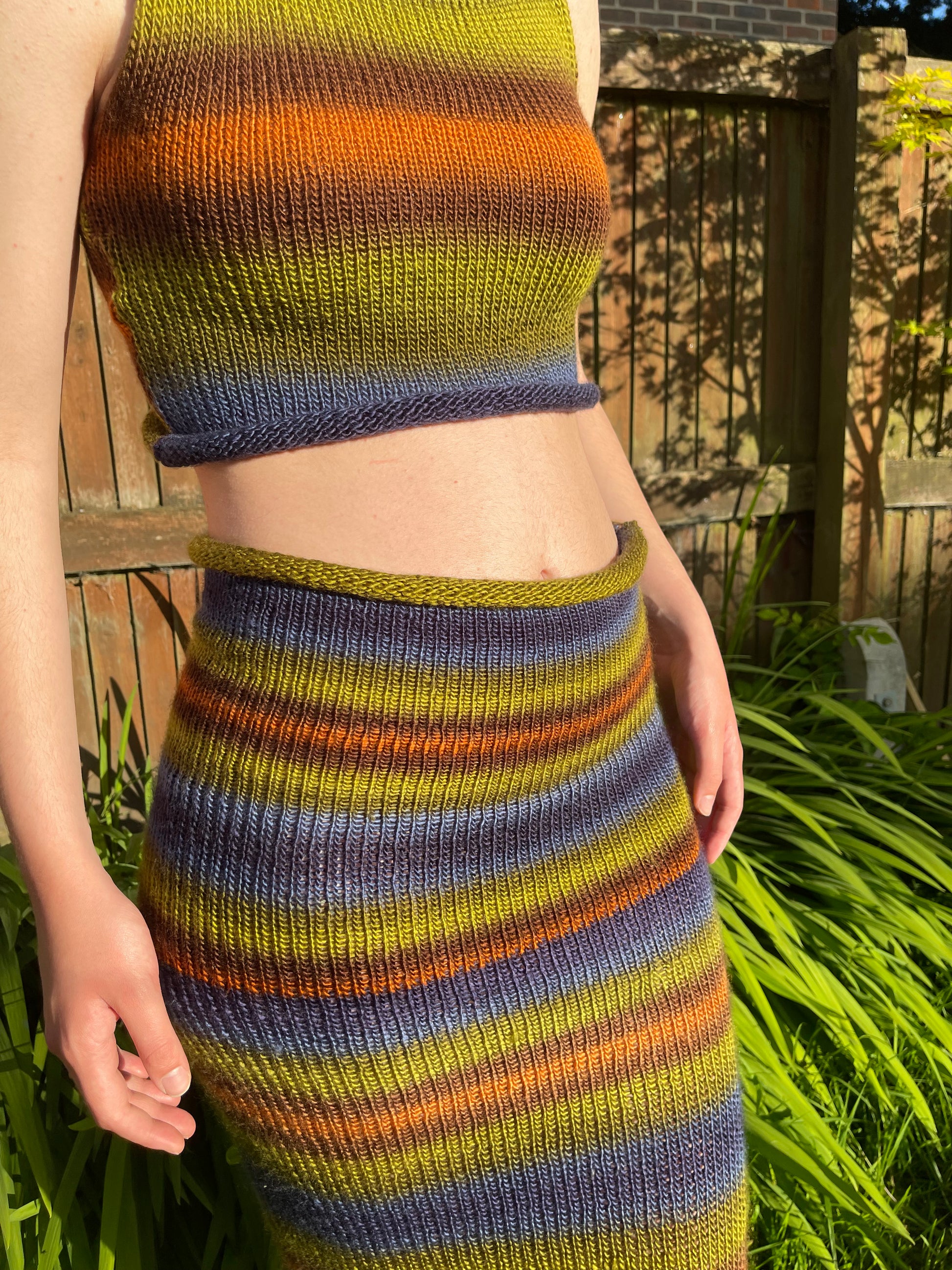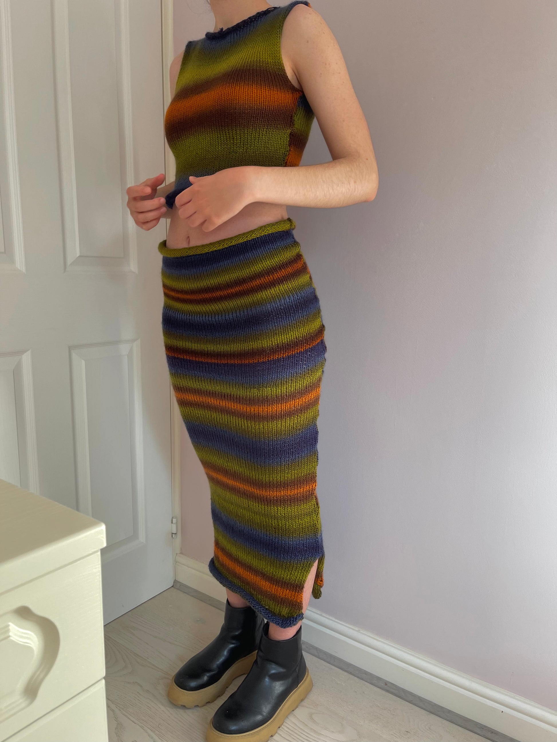 Super flattering, mid rise and figure hugging shape, very stretchy and with a side slit making it easy to walk about in! Lightweight knit and gorgeous colours with a lovely sheen to them