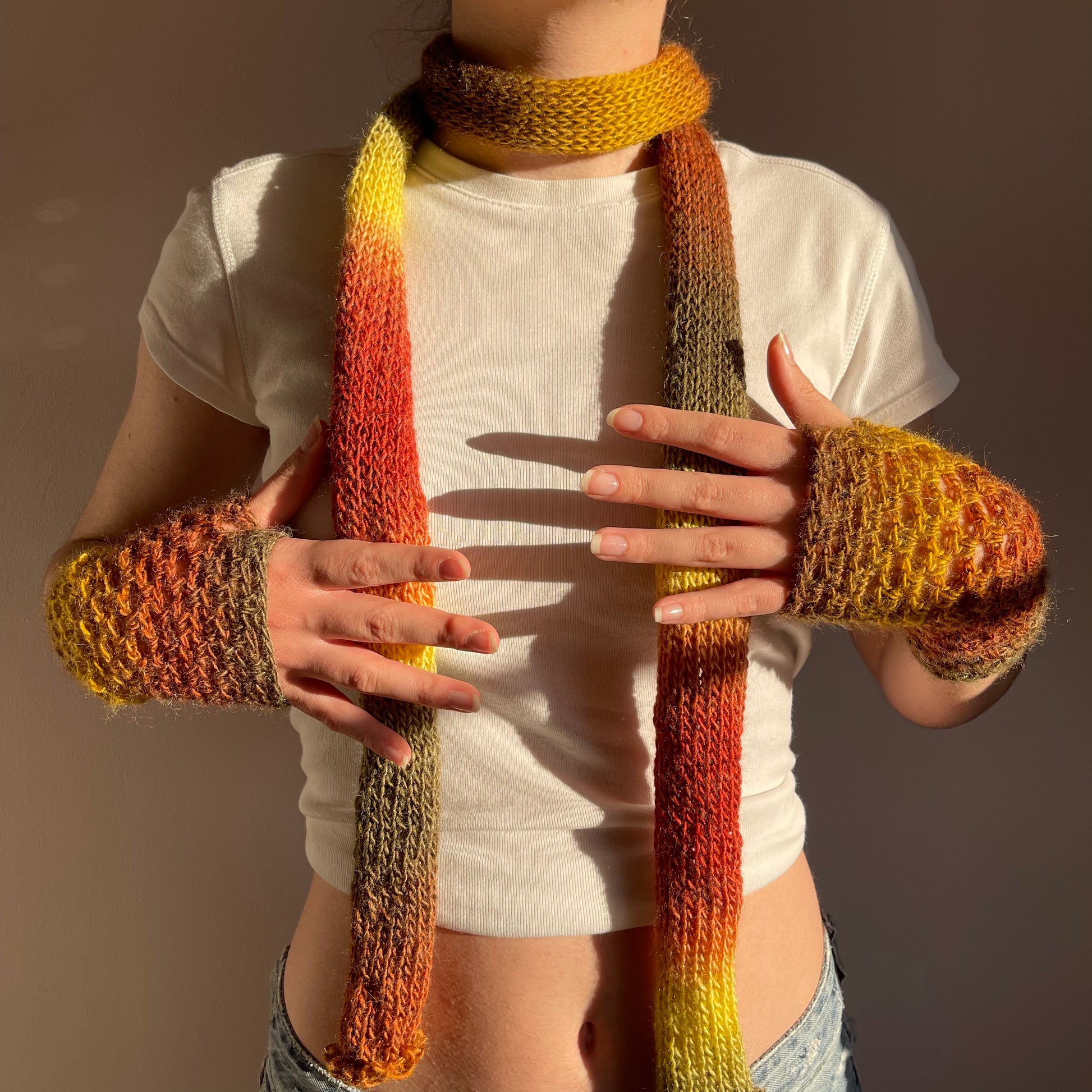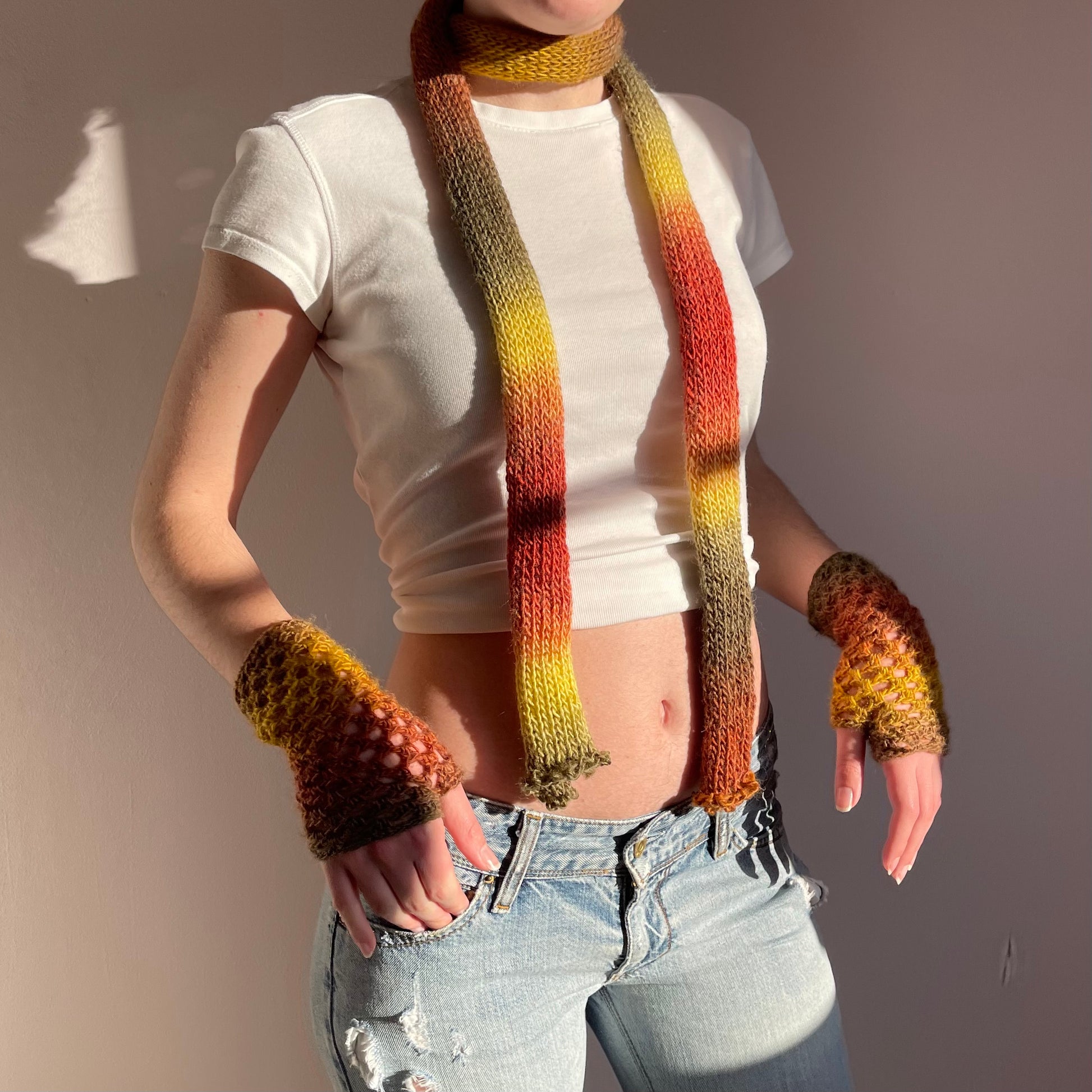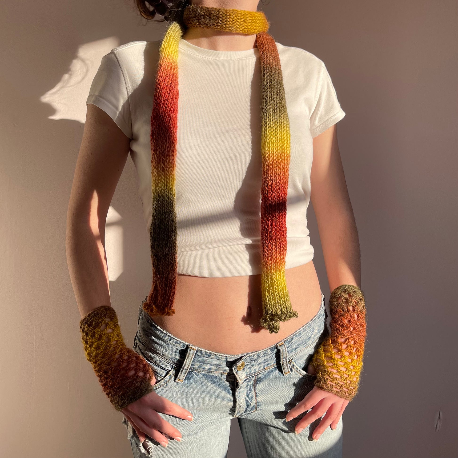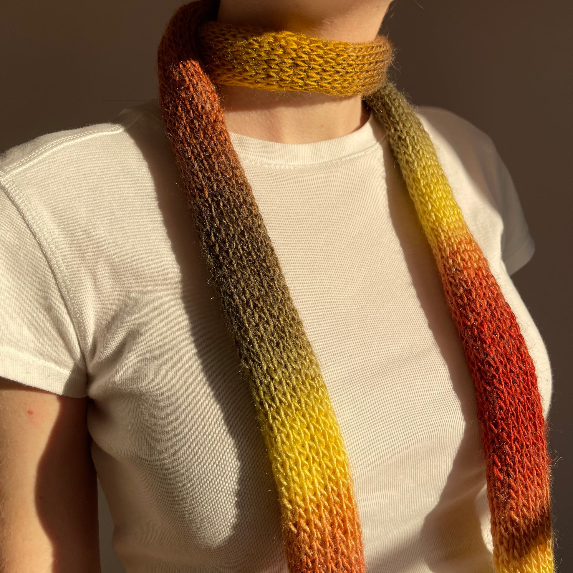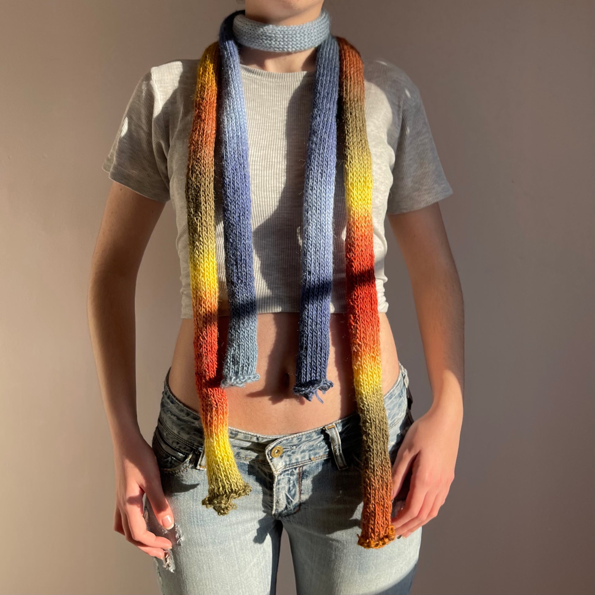 Knit skinny scarf in the most gorgeous ombré colours, the perfect addition to your outfit and really flattering. Great for all year round!