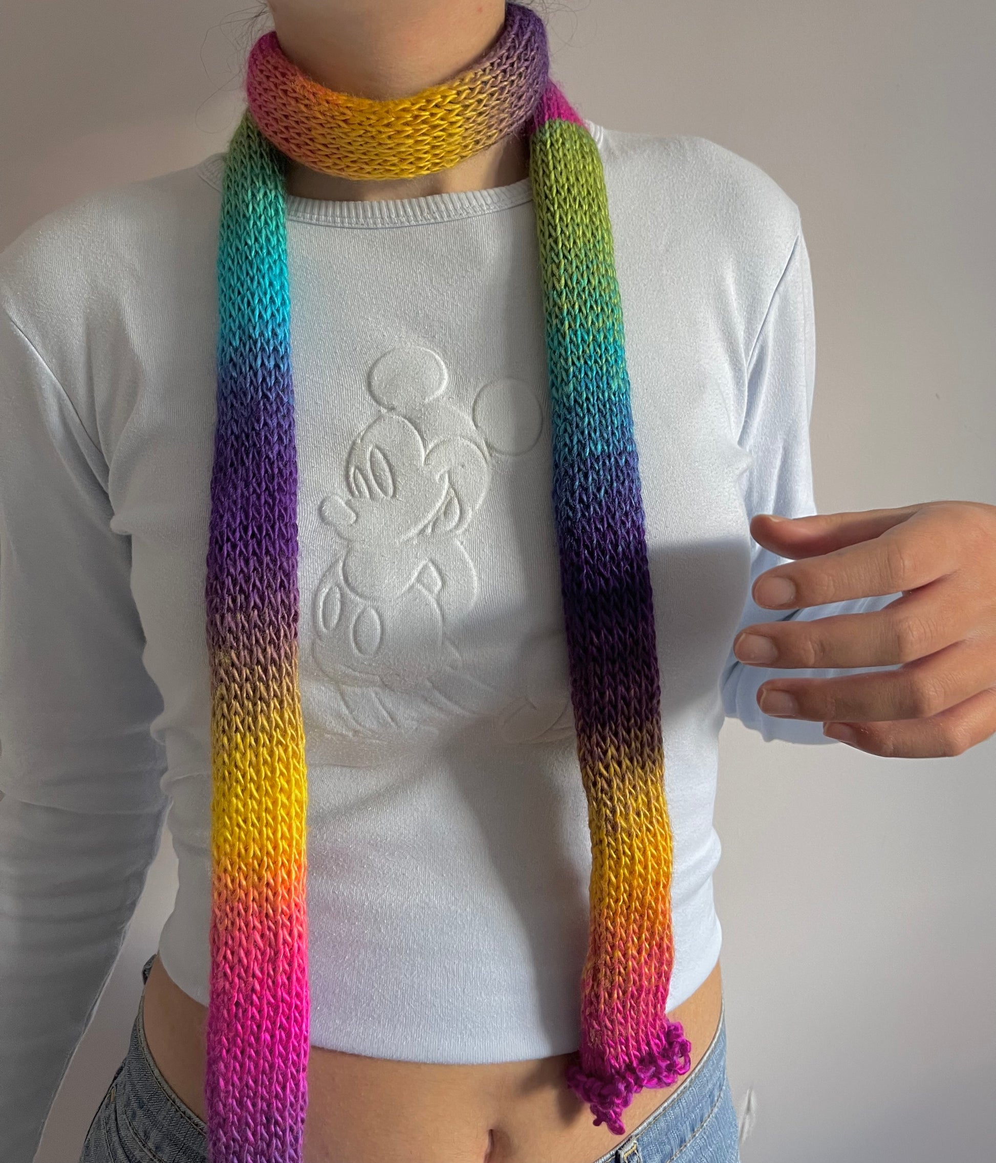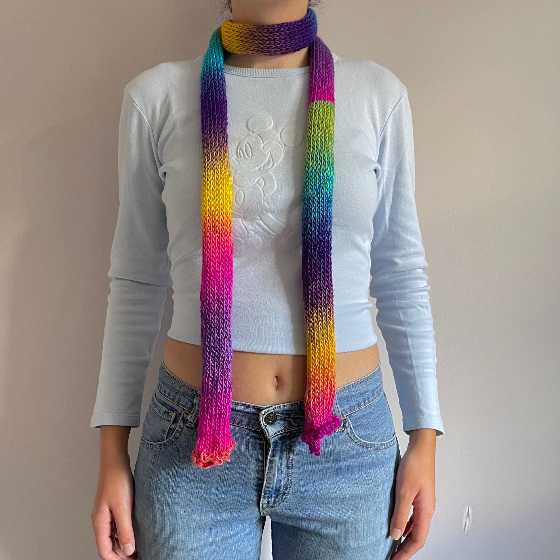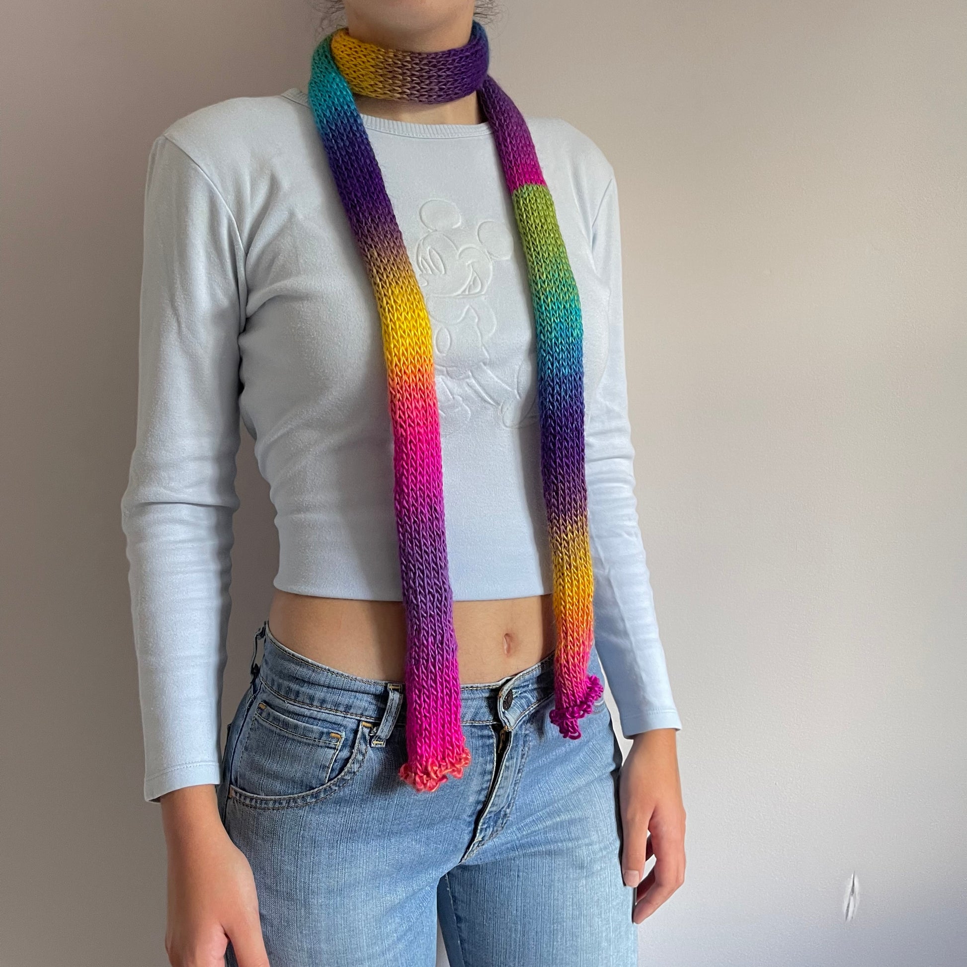 Knit skinny scarf in the most gorgeous ombré colours, the perfect addition to your outfit and really flattering. Great for all year round!