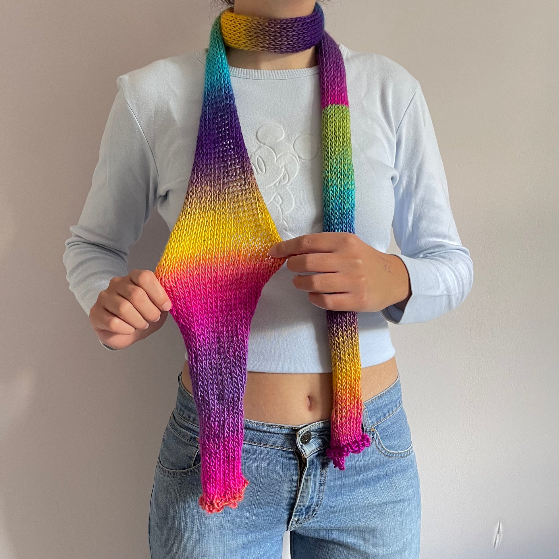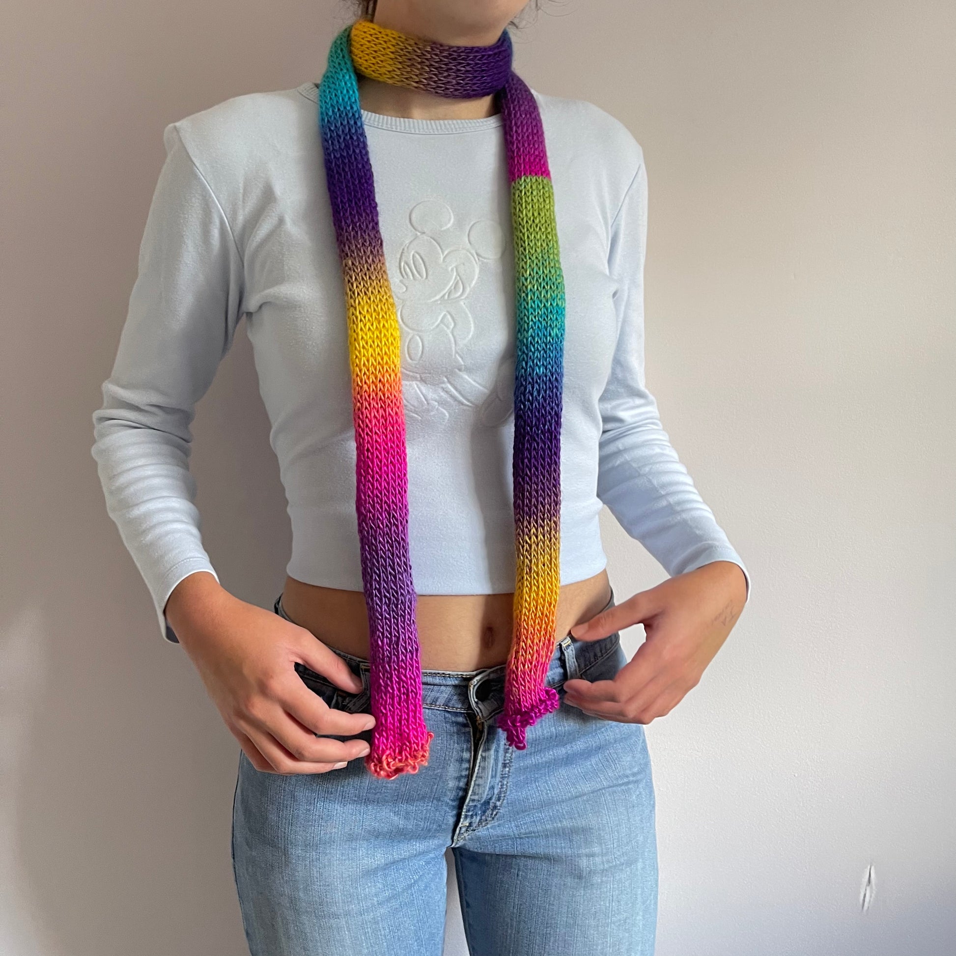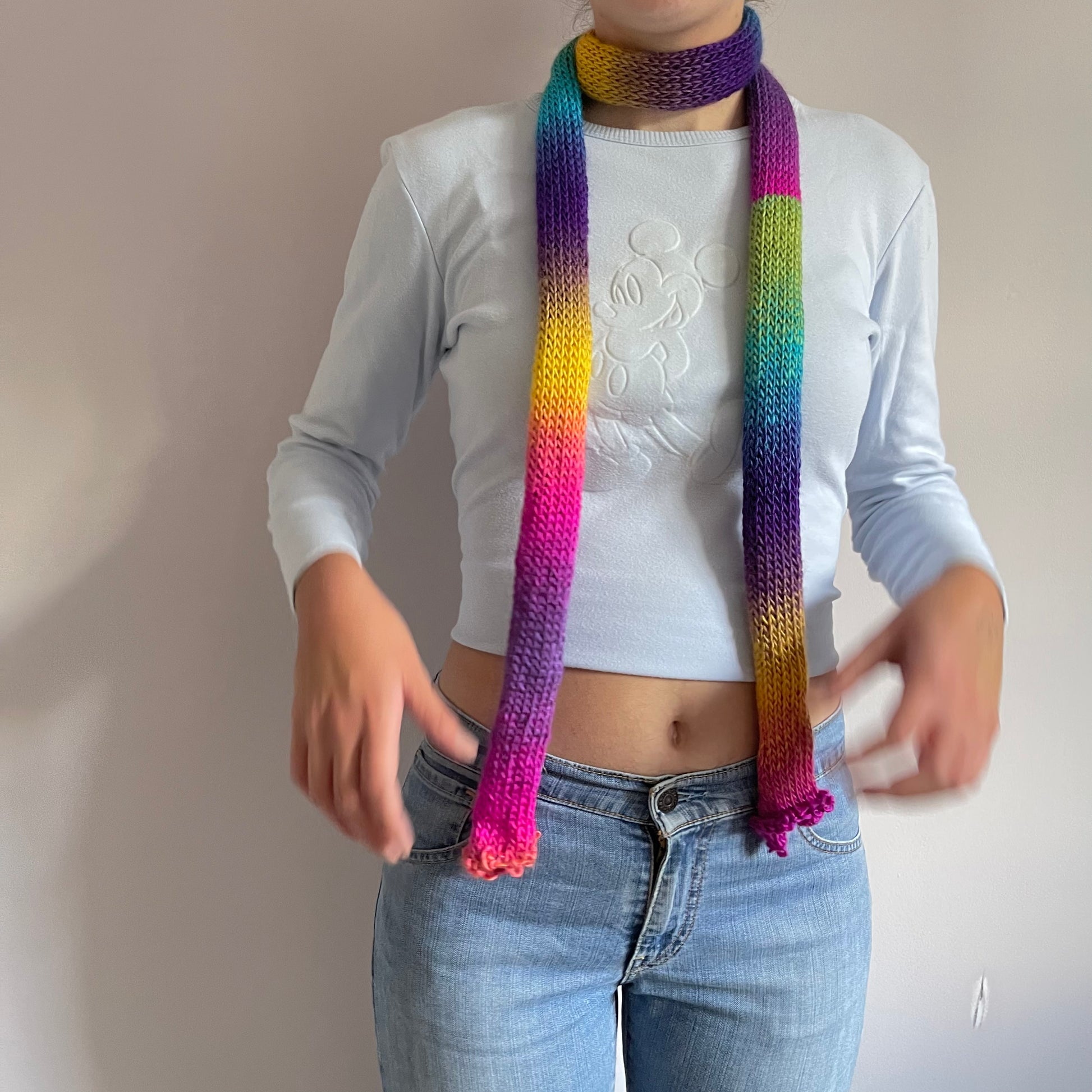 Knit skinny scarf in the most gorgeous ombré colours, the perfect addition to your outfit and really flattering. Great for all year round!