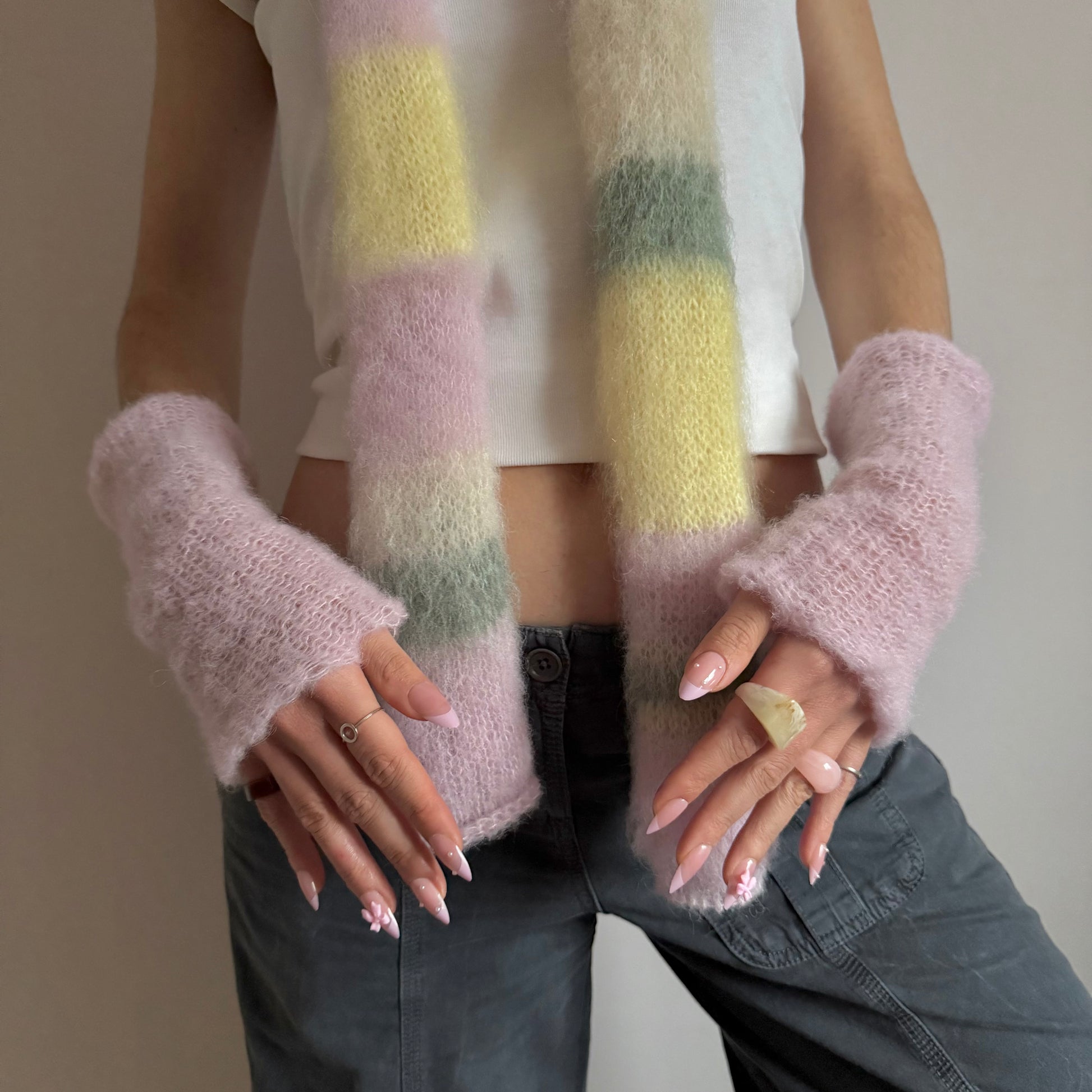 Handmade reversible knitted mohair hand warmers - 7 COLOUR OPTIONS