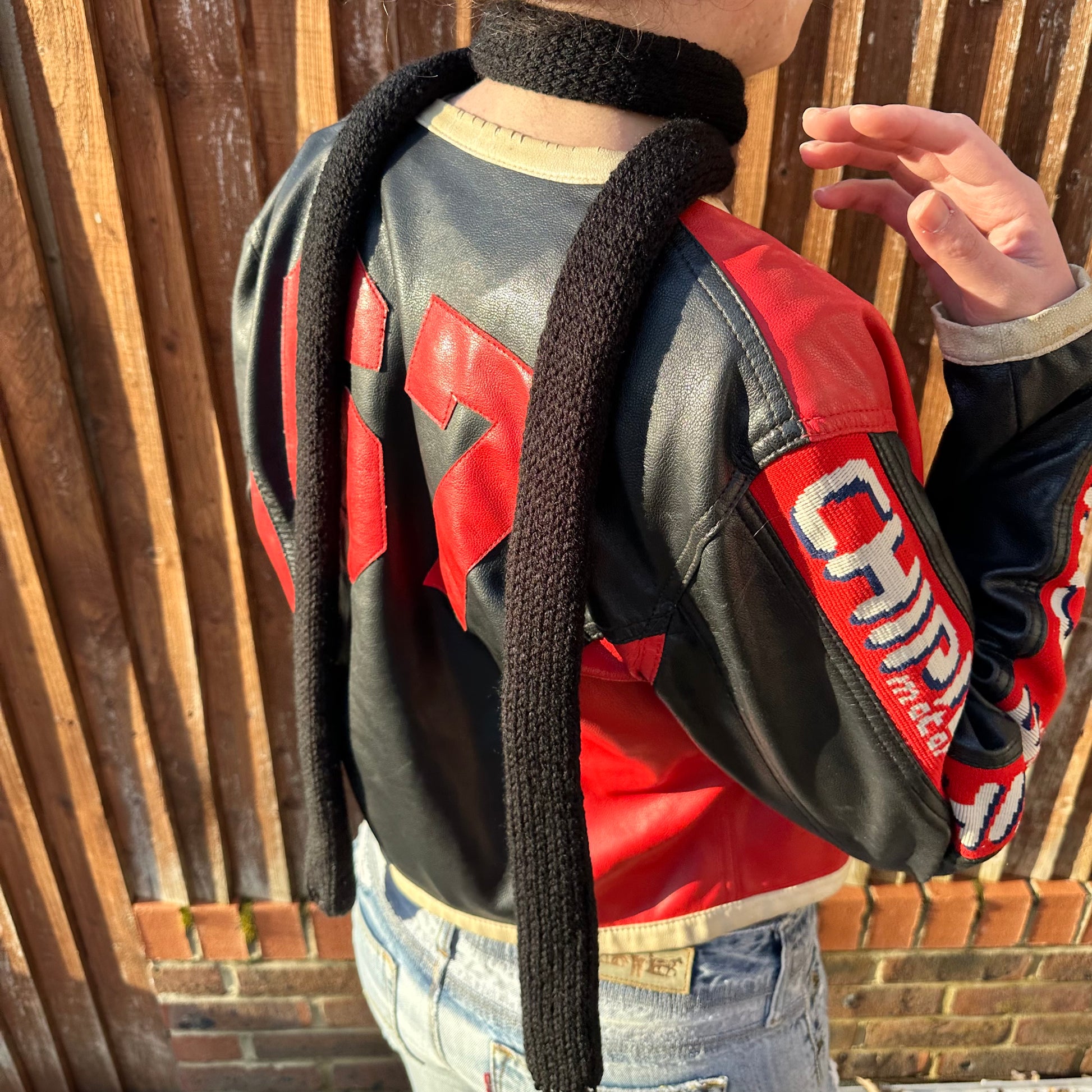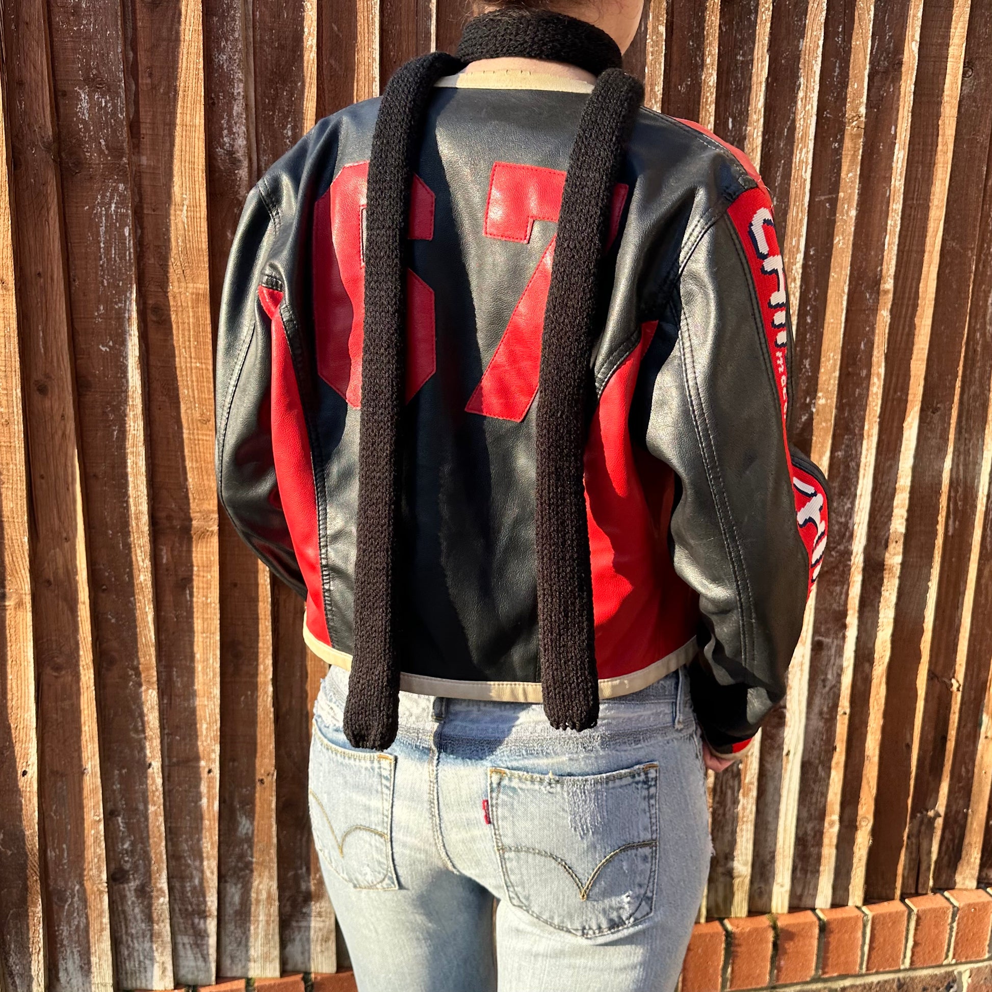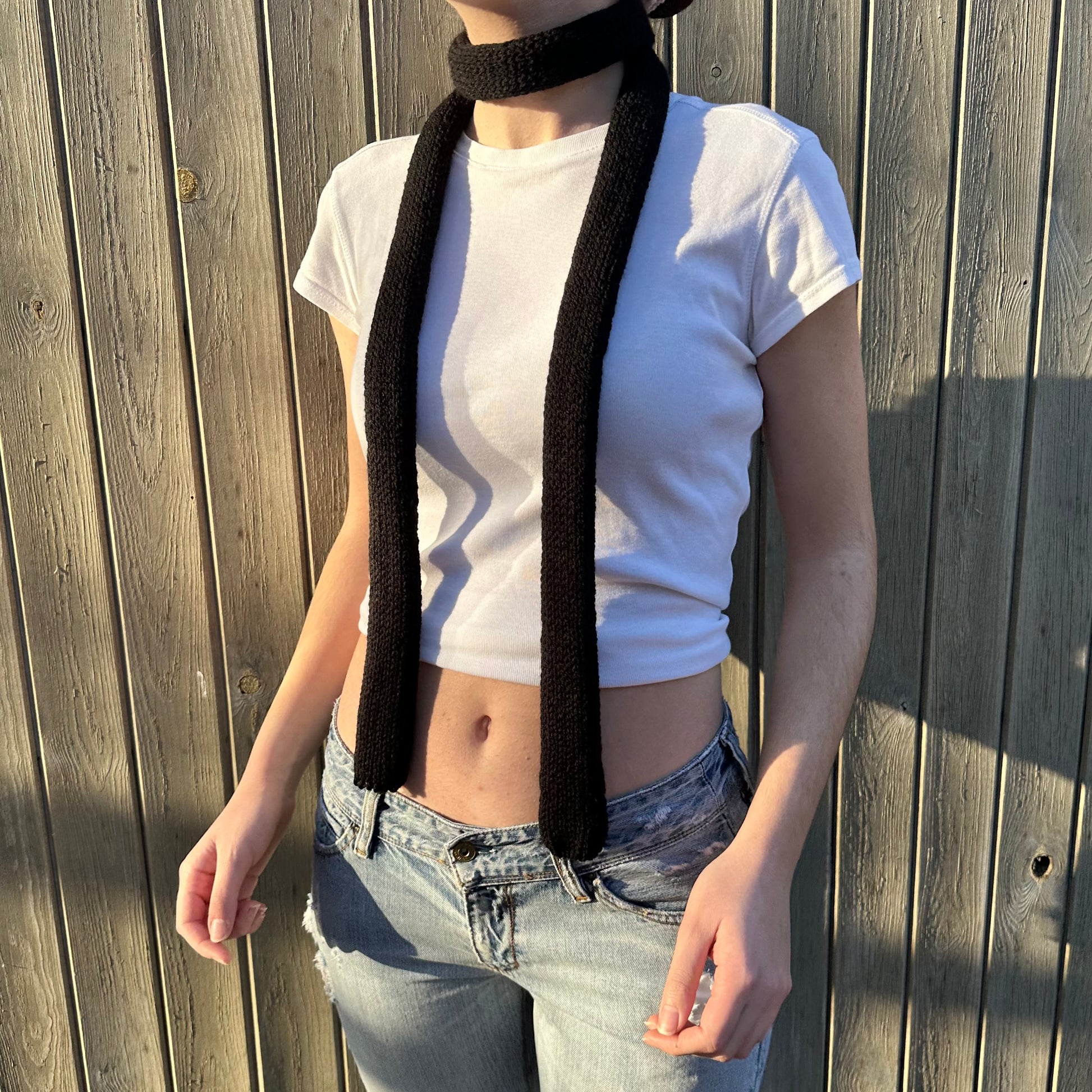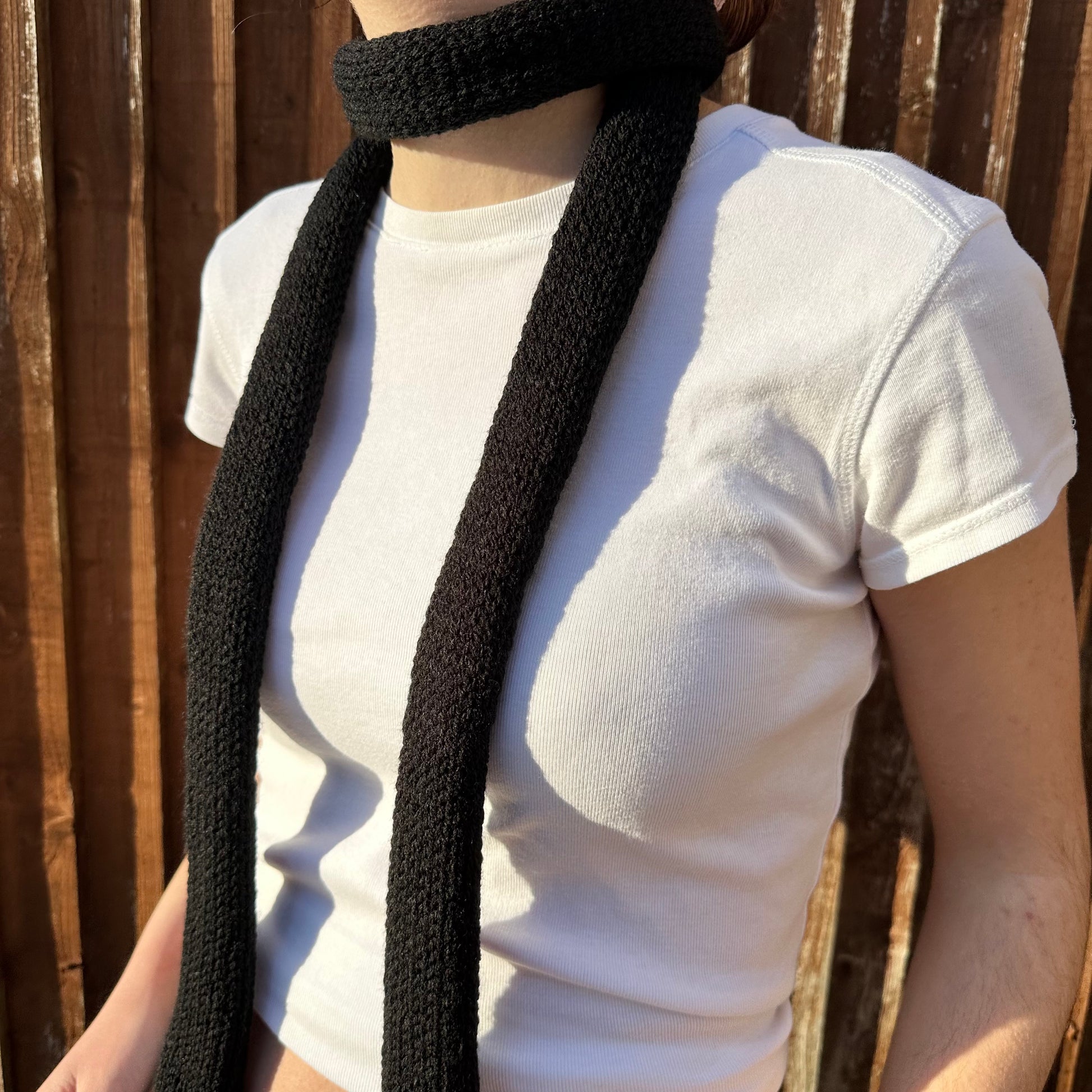 Handmade knitted skinny scarf in black