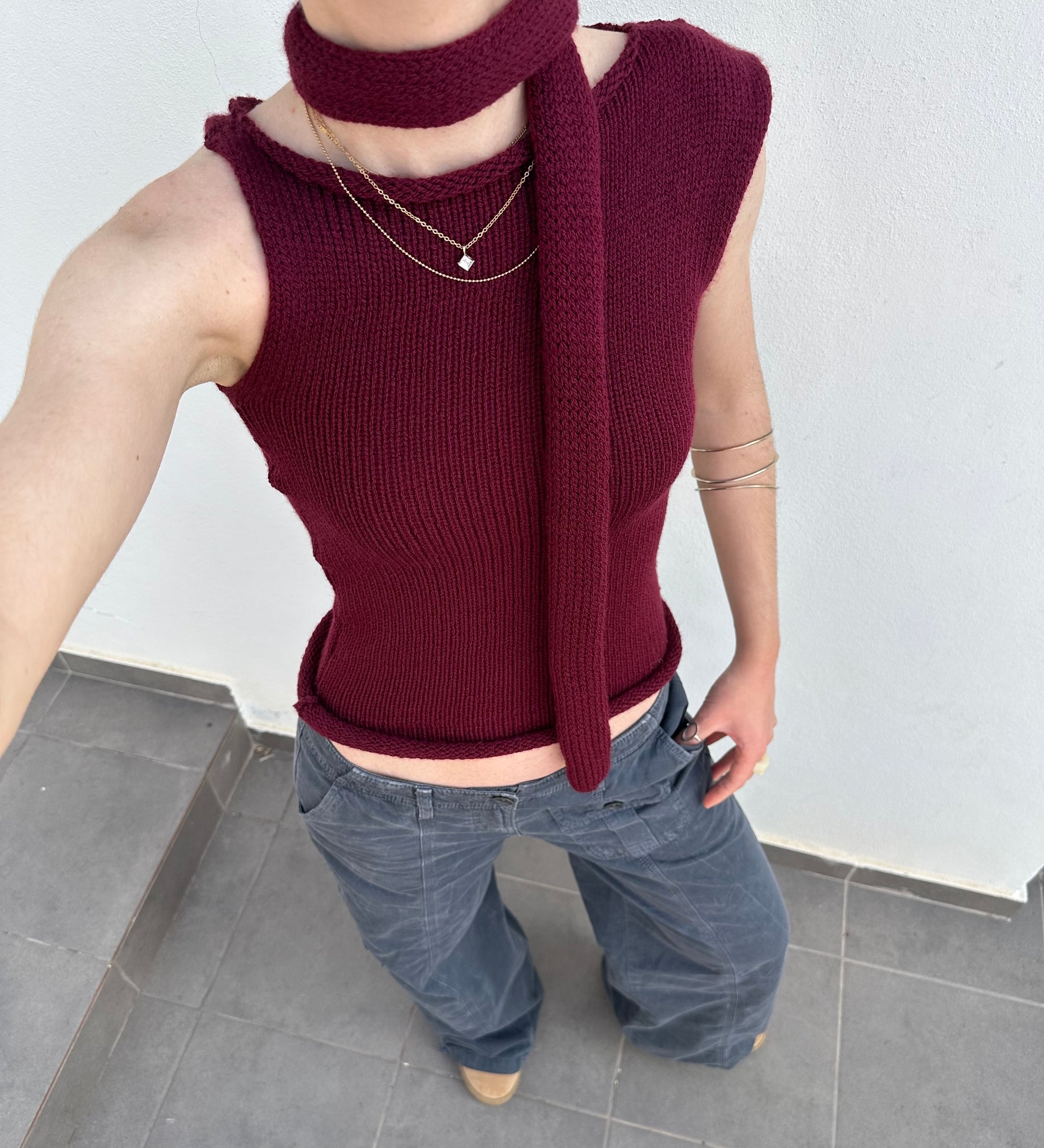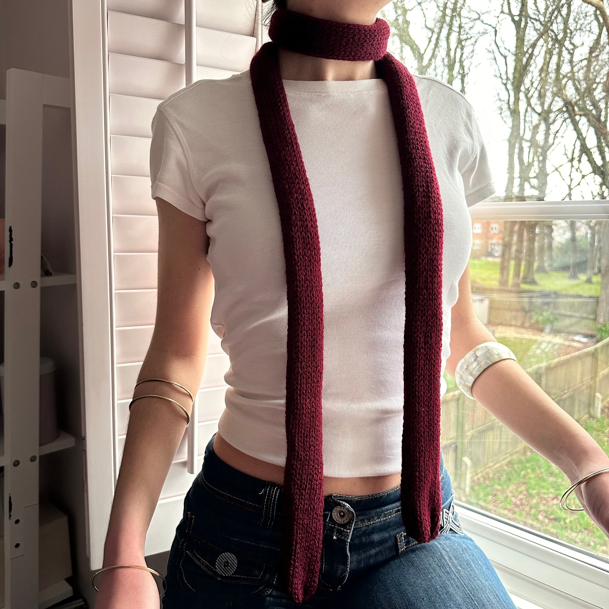 Knit skinny scarf in burgundy, the perfect addition to your outfit. Great for all year round! 💋