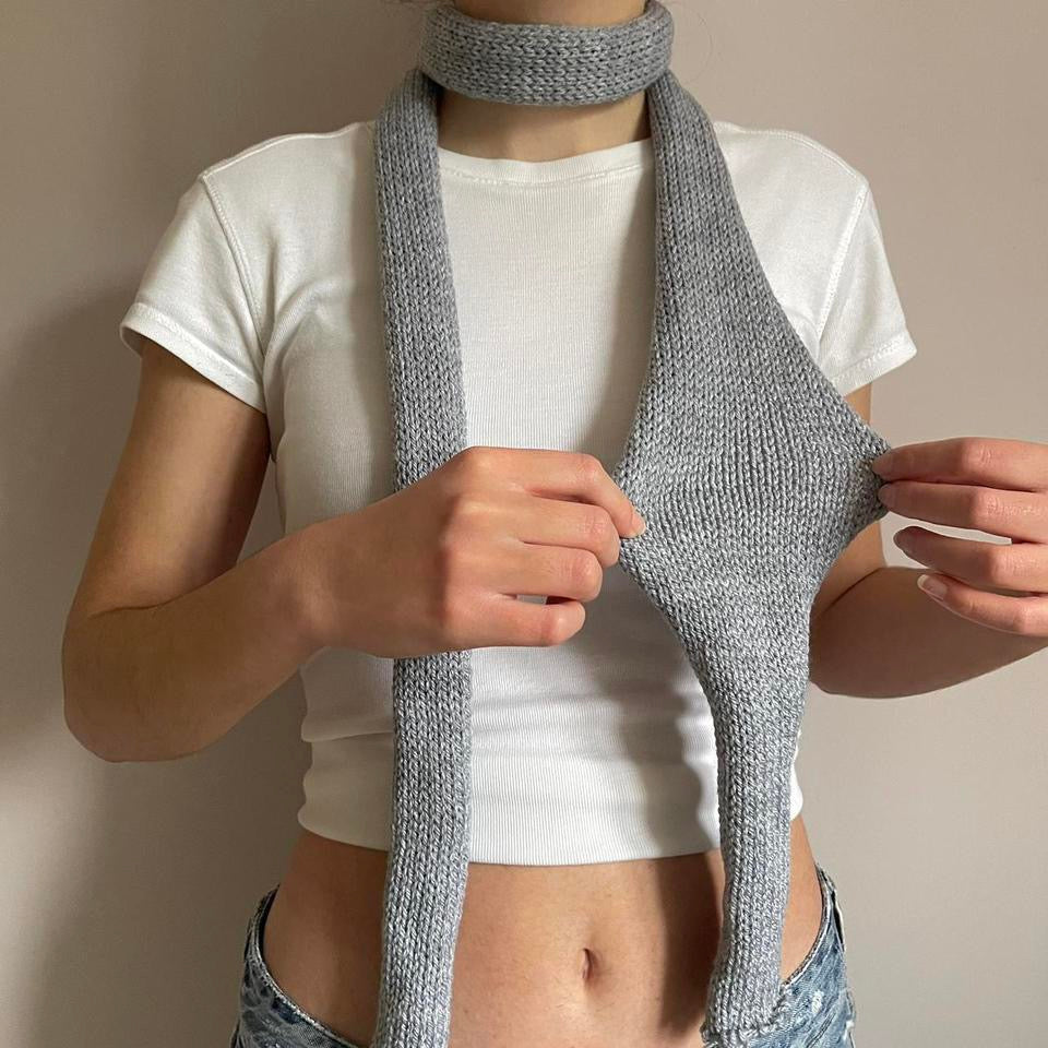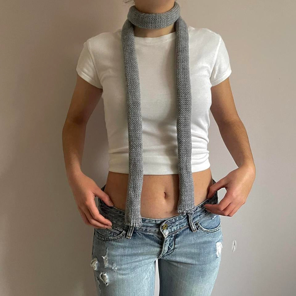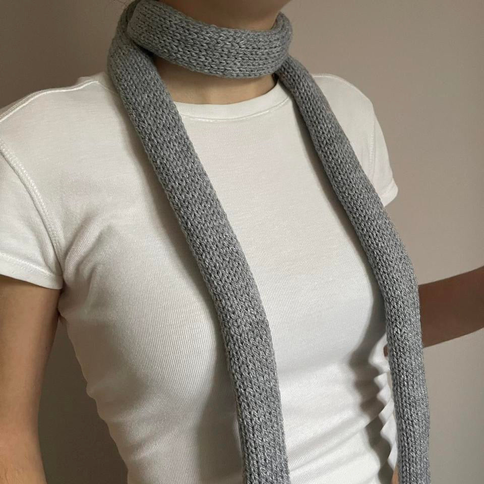 Knit skinny scarf in grey, the perfect addition to your outfit and really flattering. Great for all year round! 👽🌪🫧