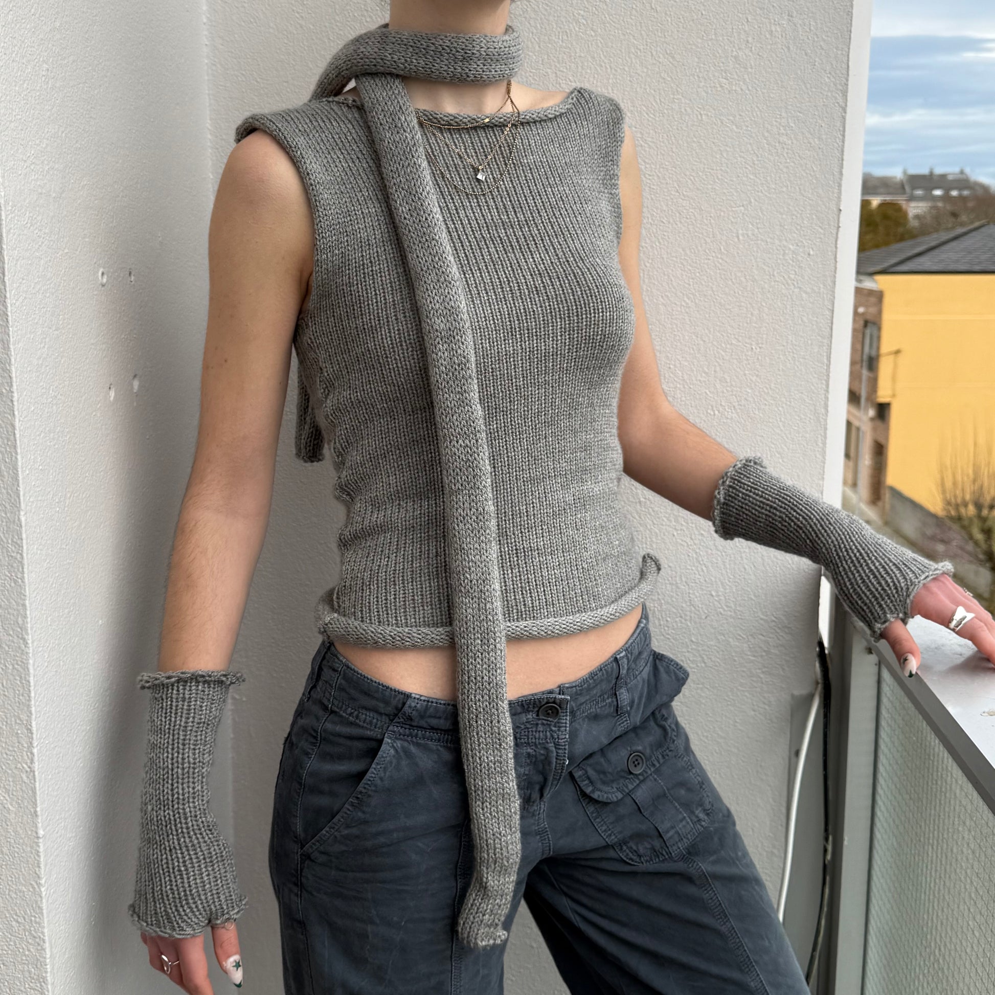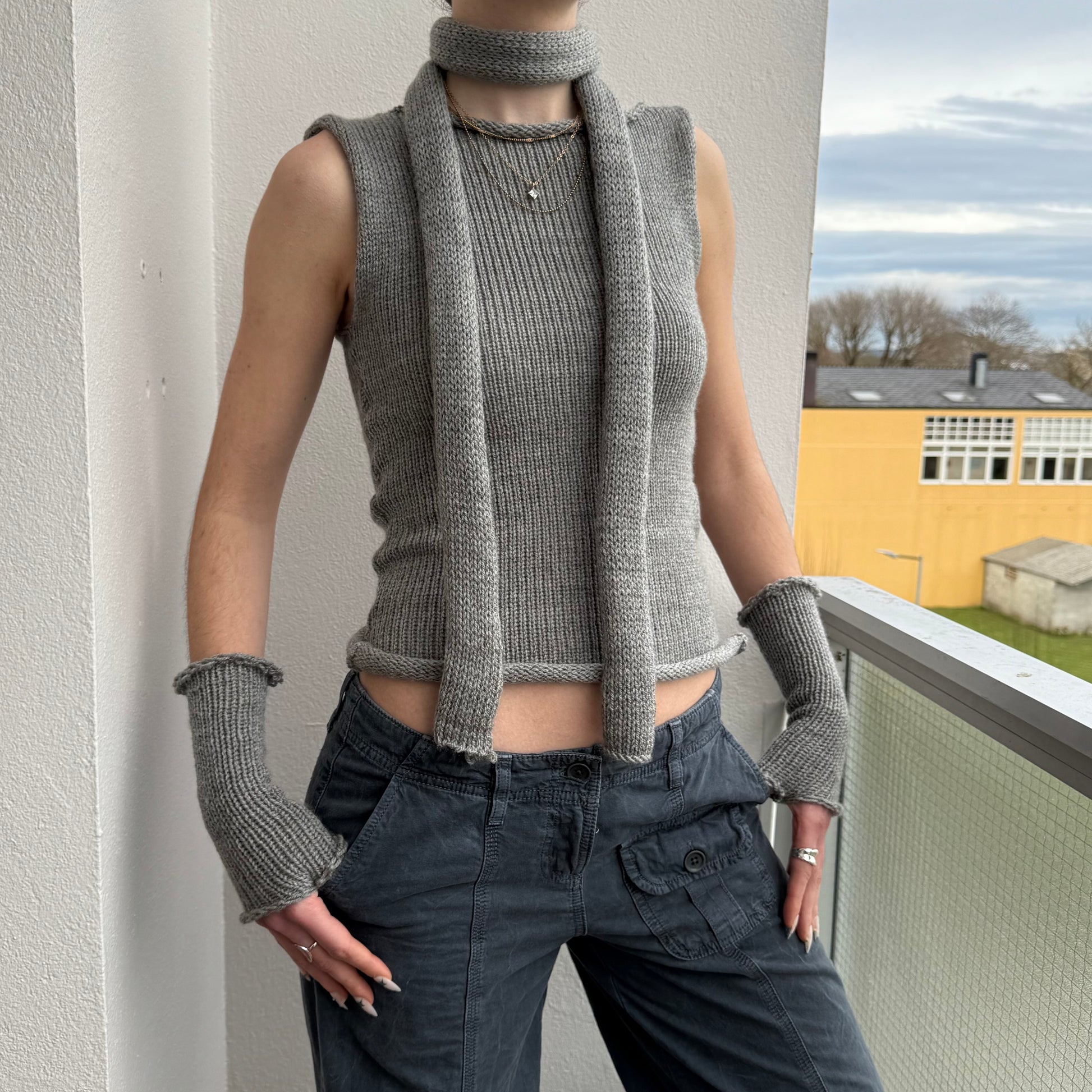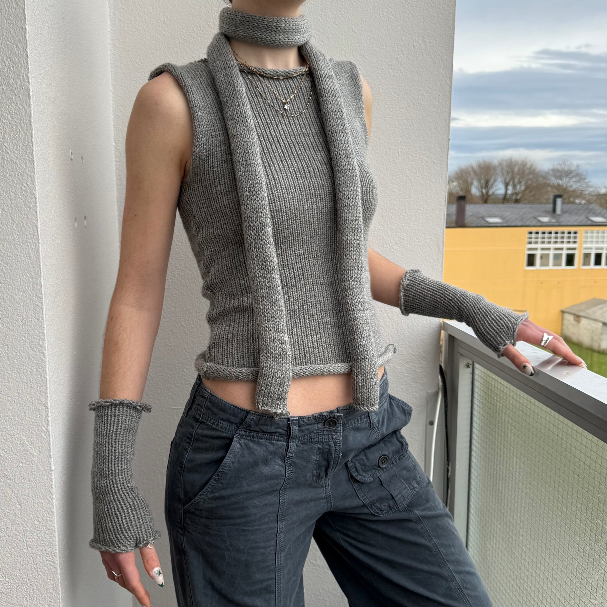 Knit skinny scarf in grey, the perfect addition to your outfit and really flattering. Great for all year round! 👽🌪🫧