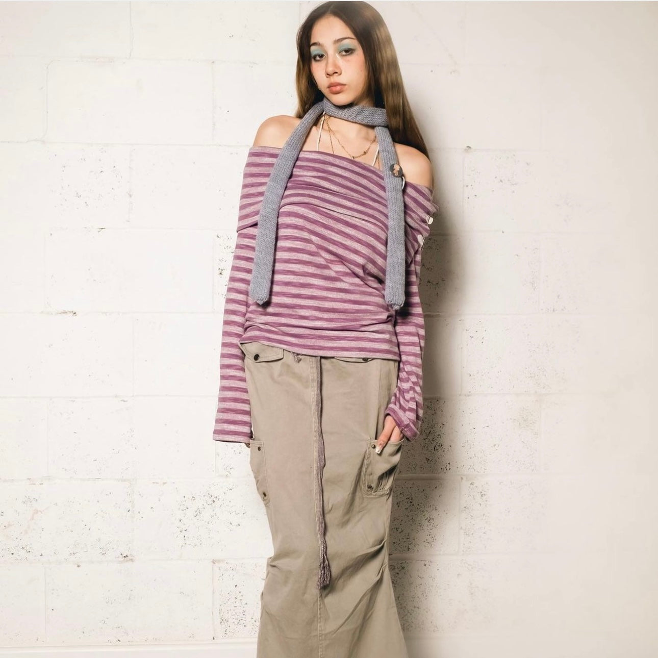 Rolls up naturally to be a skinny scarf (see 4th pic for full width)