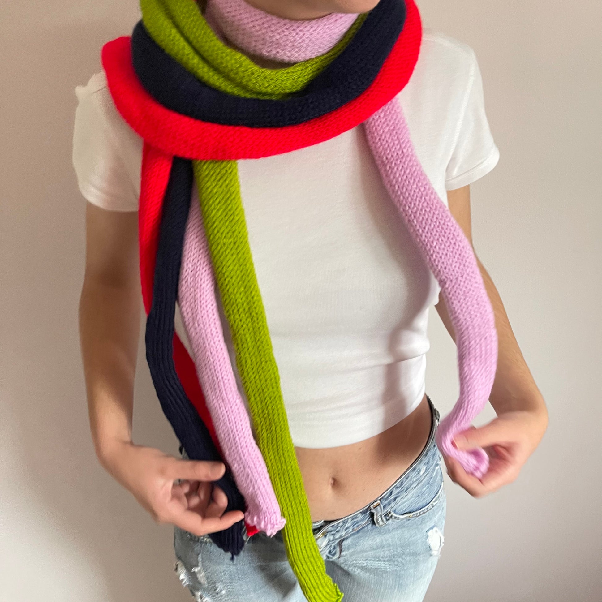 Rolls up naturally to be a skinny scarf (see 4th pic for full width)