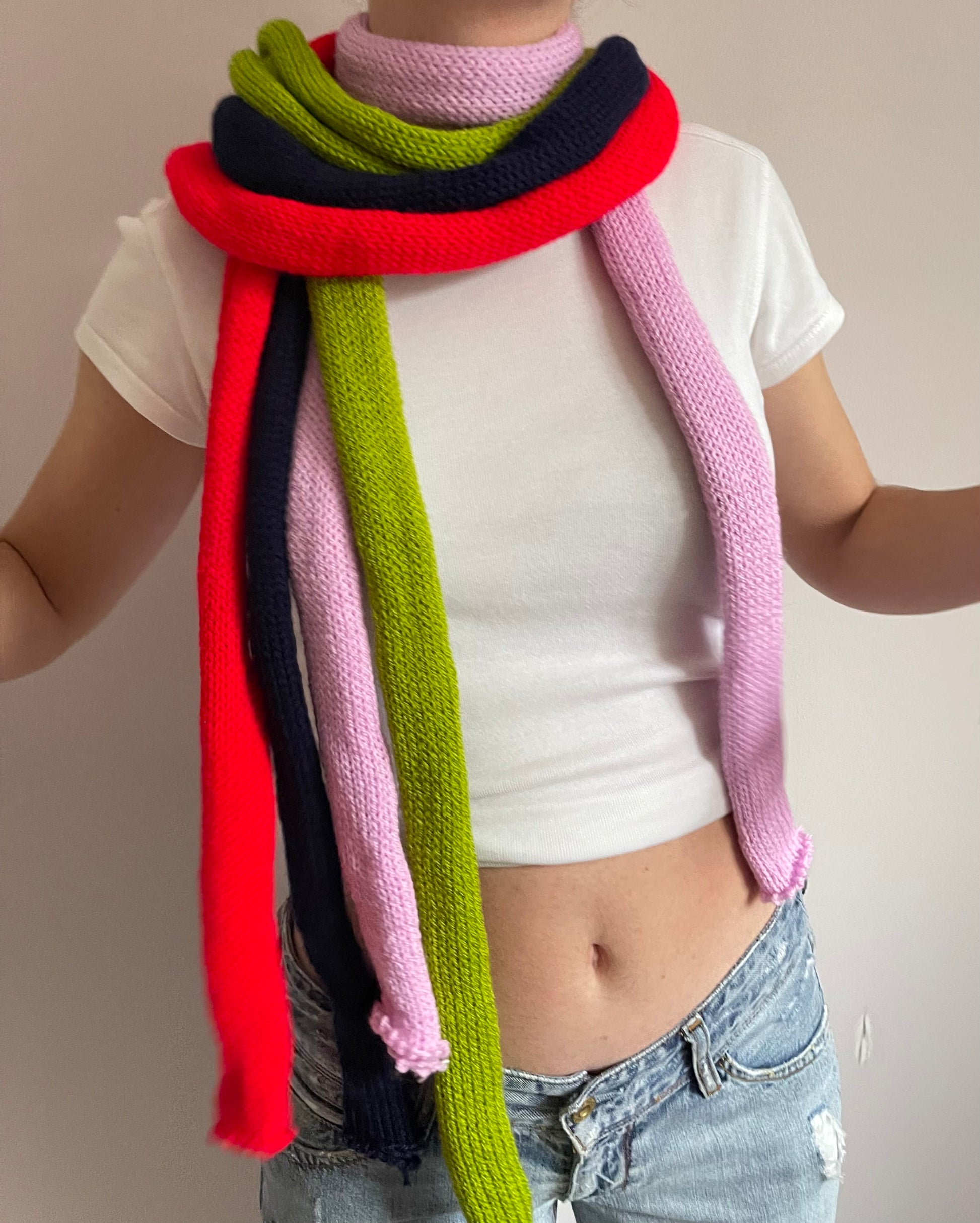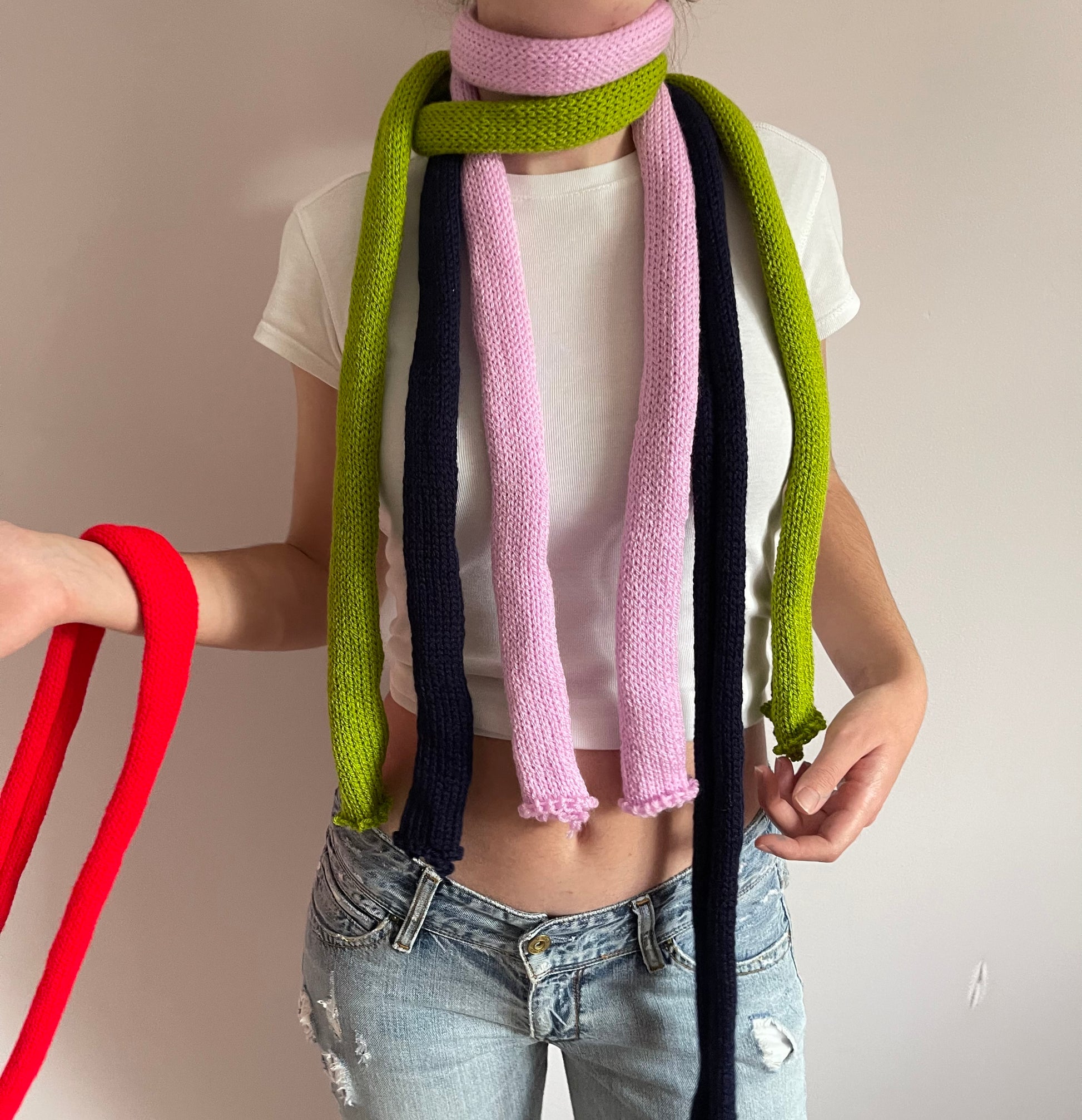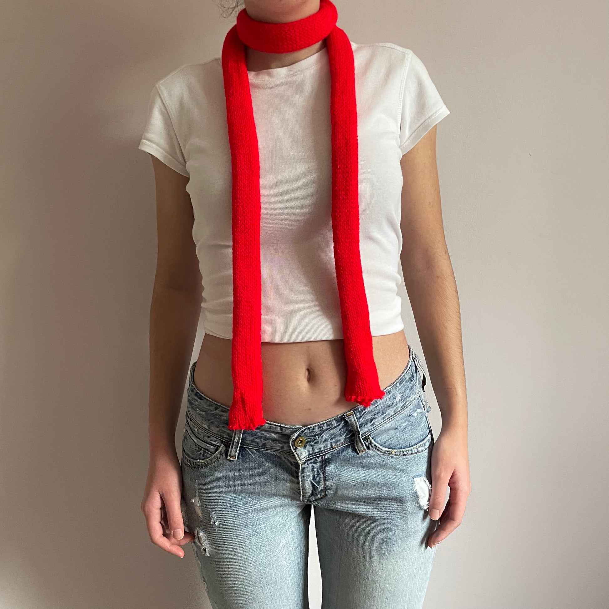 Knit red skinny scarf, the perfect addition to your outfit and really flattering. Great for all year round! โค๏ธ๐งฃ