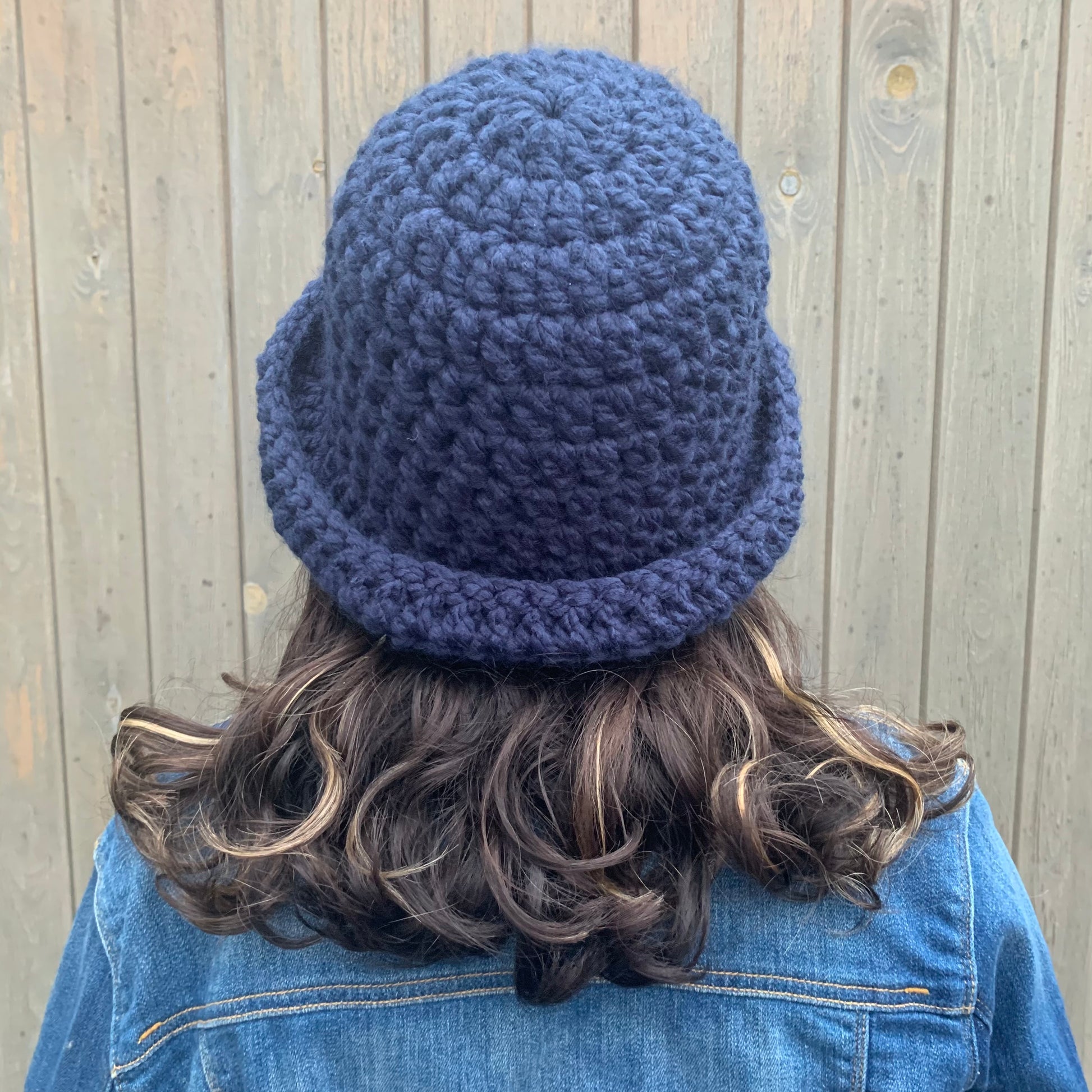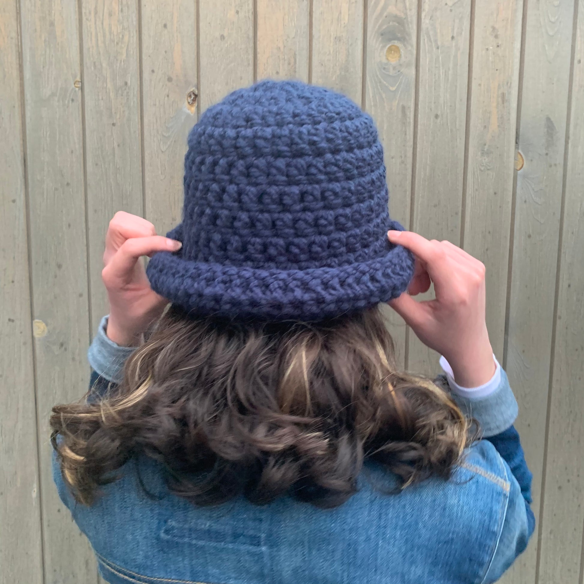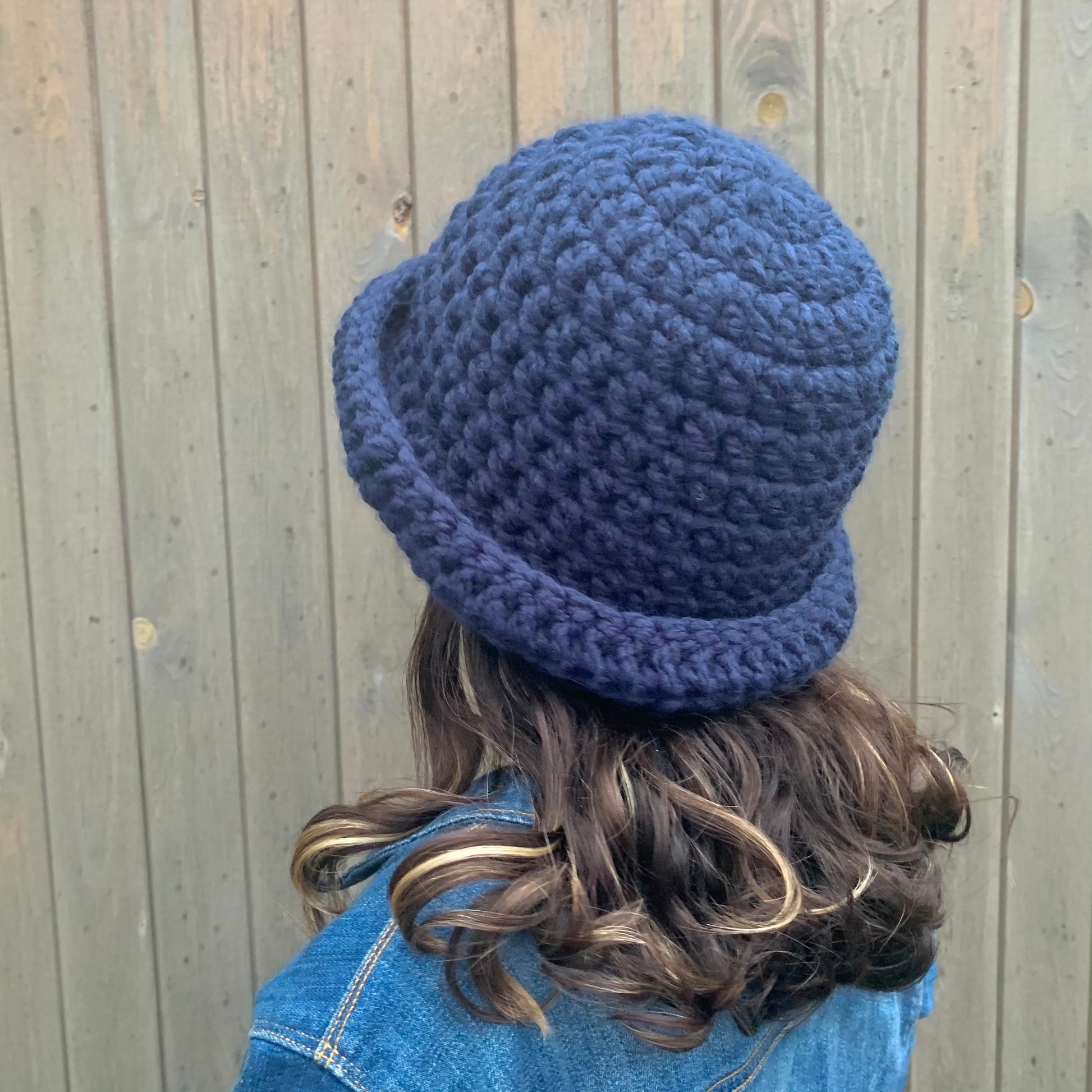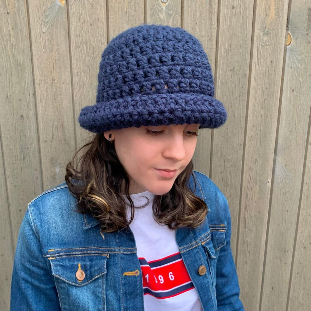 Handmade navy blue chunky crochet bowler hat