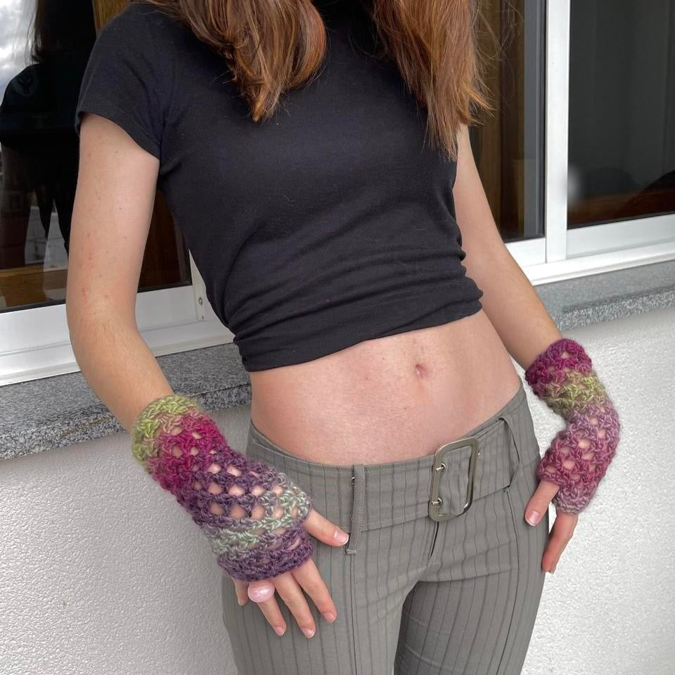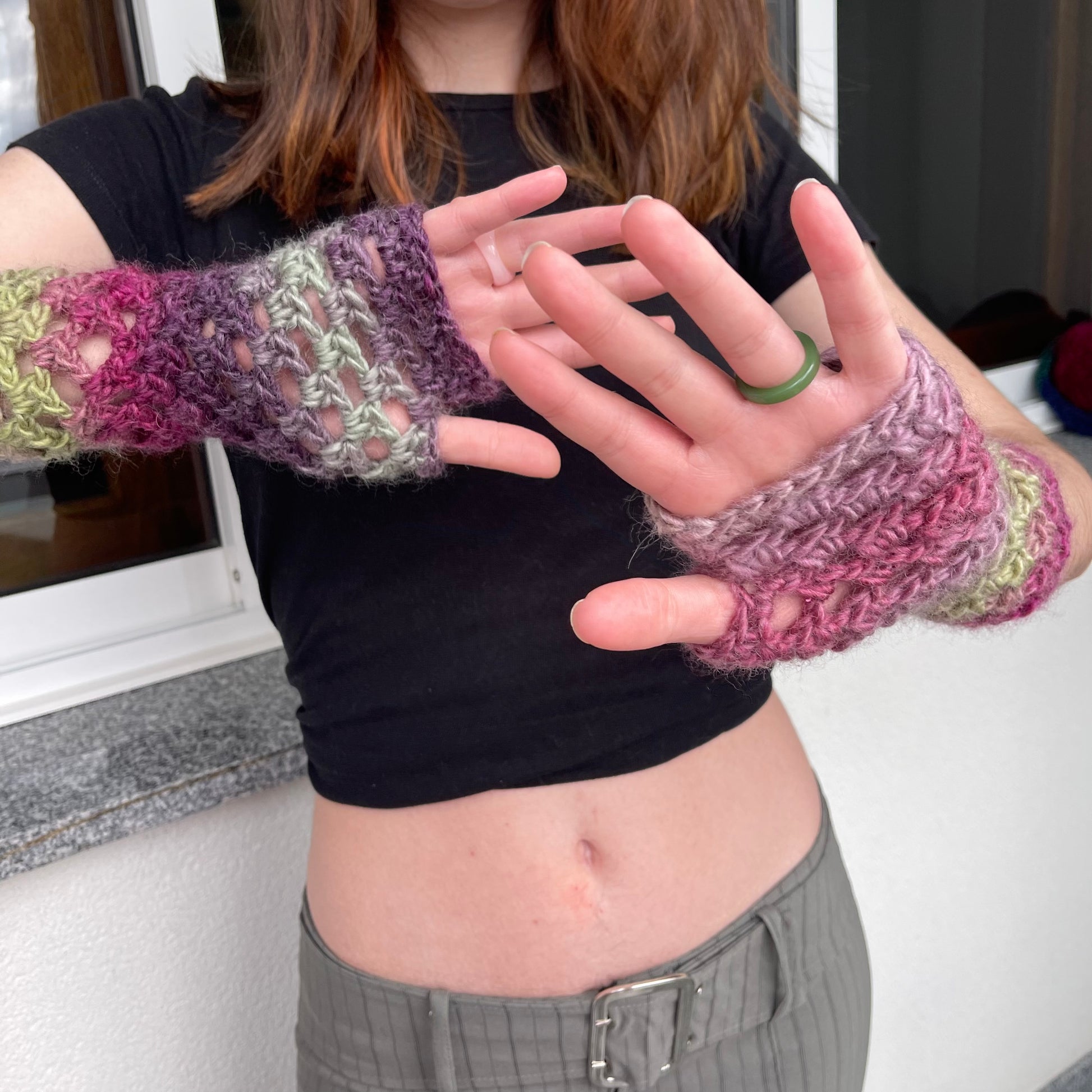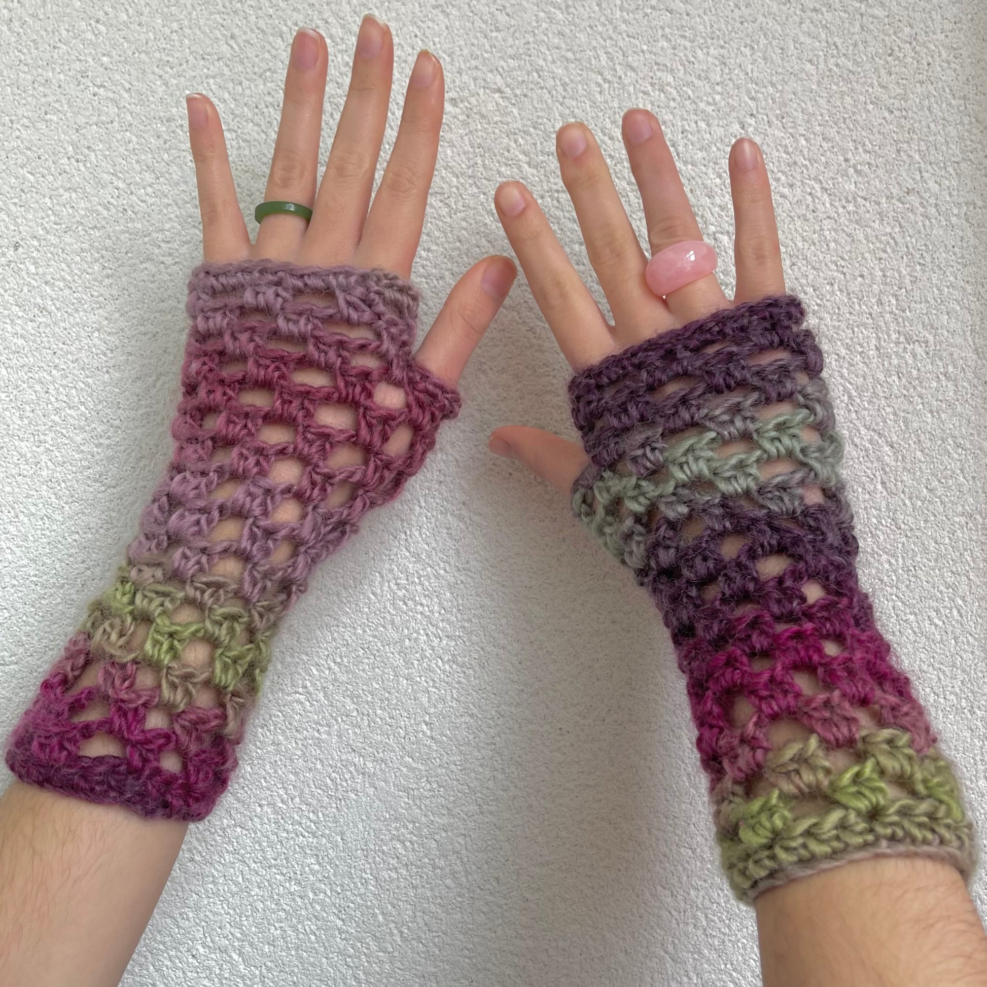 Handmade crochet fishnet fingerless gloves in a gorgeous ombré colourway! 🧚🏼🦋
