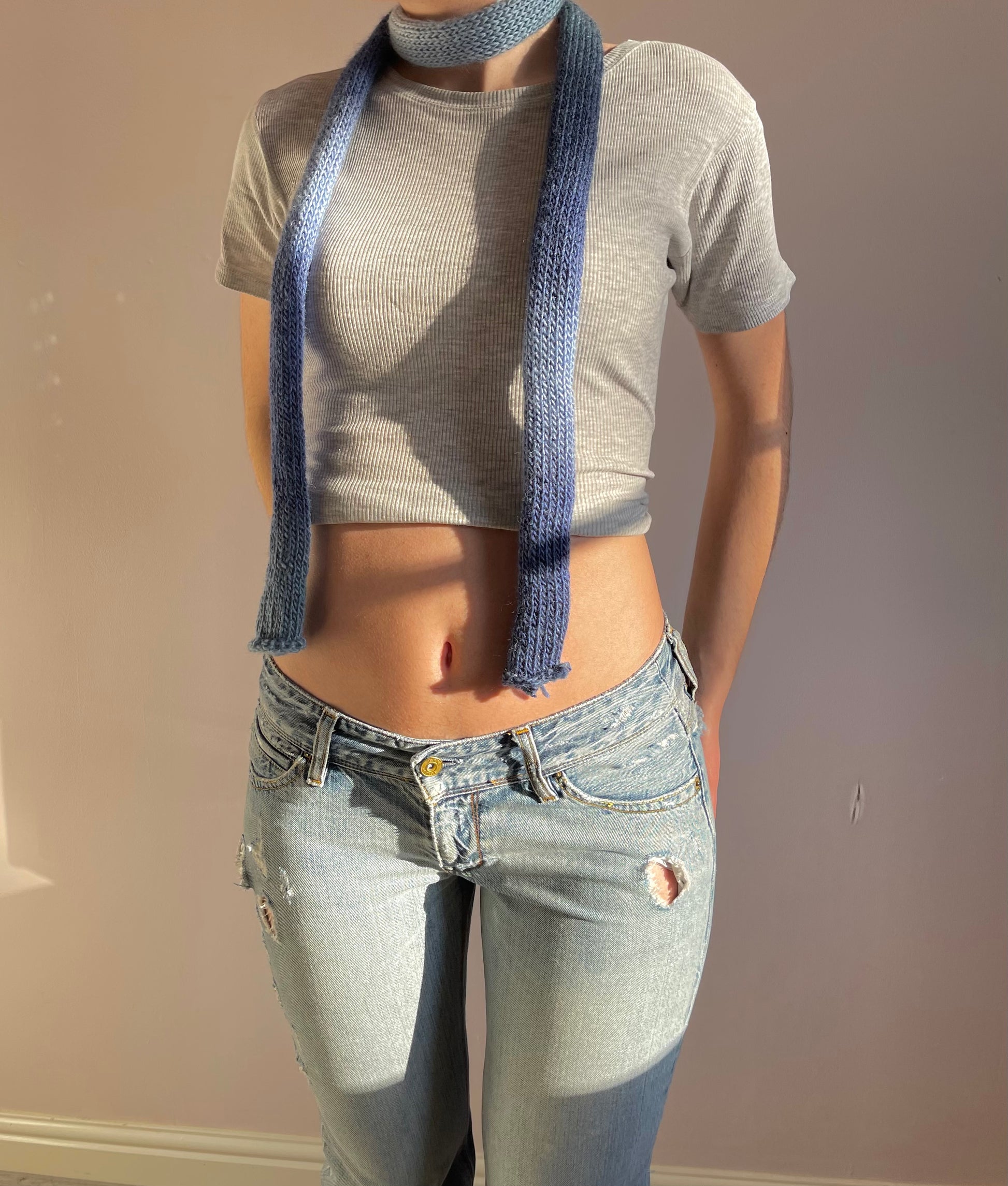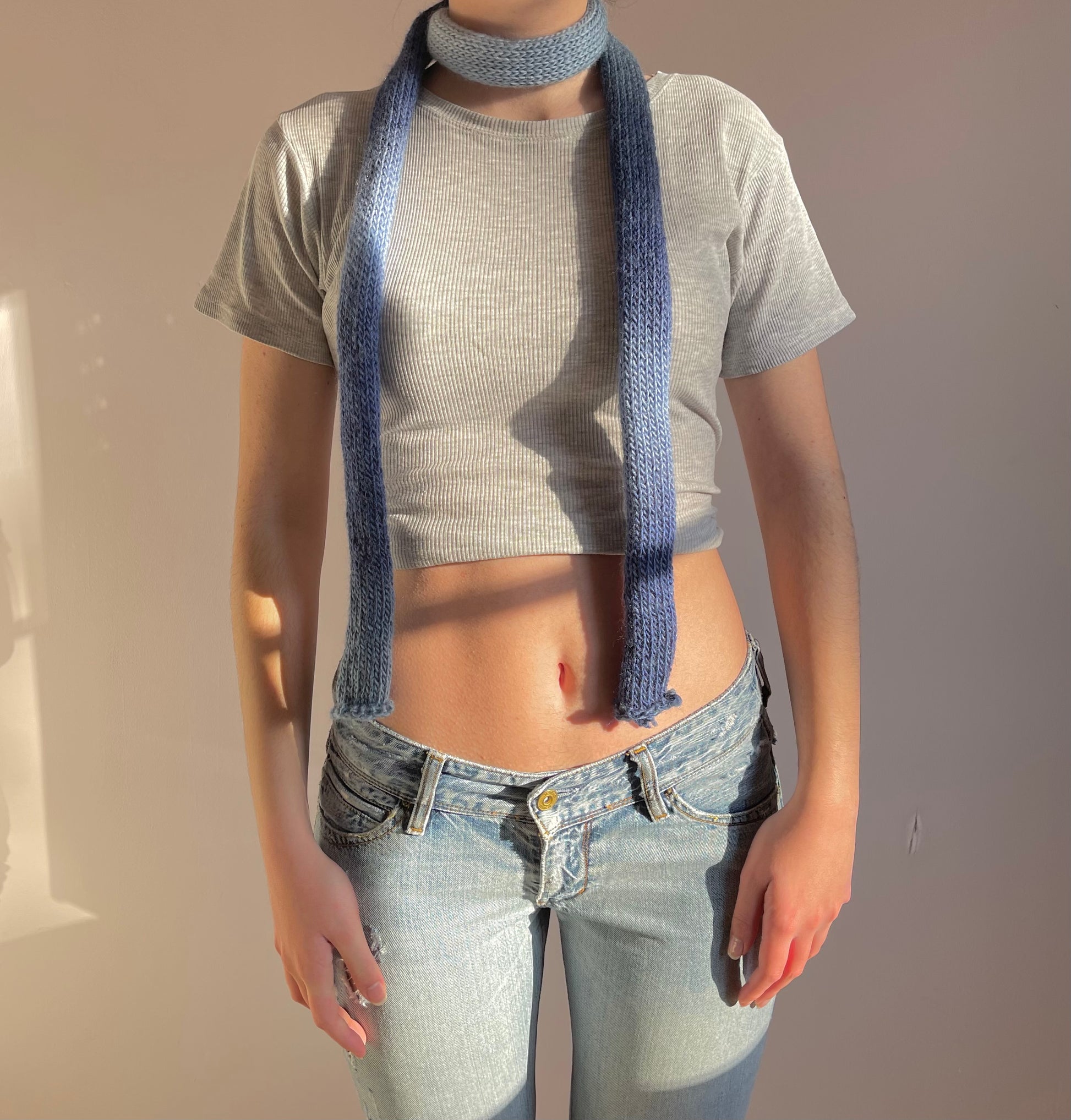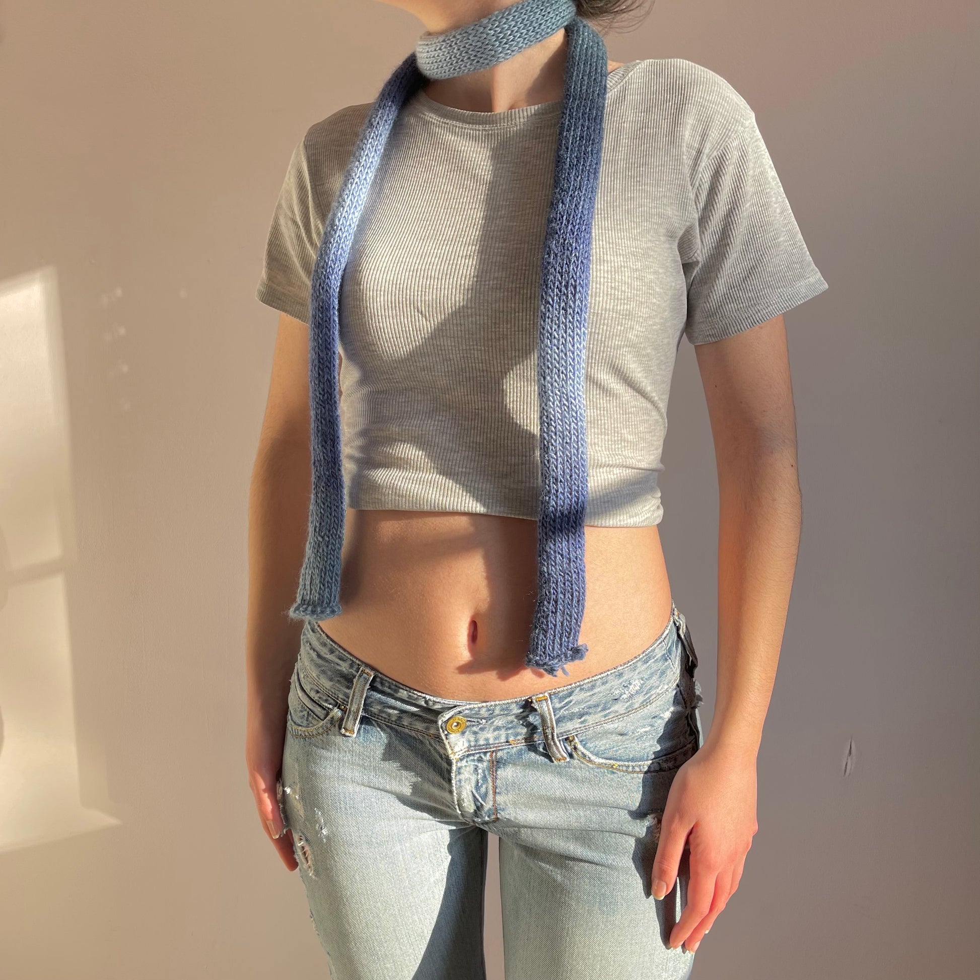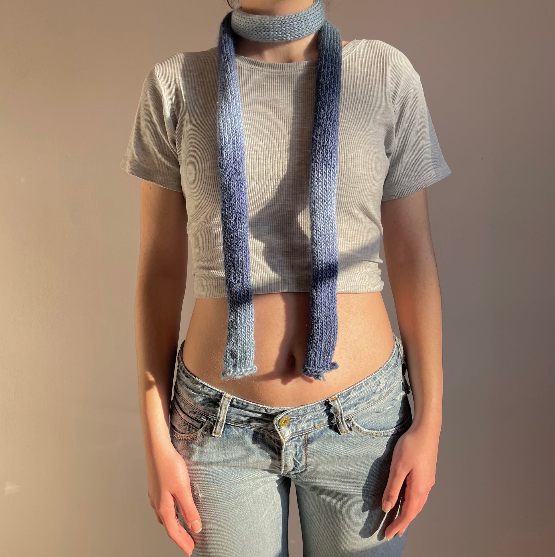 Knit skinny scarf in the most gorgeous blue ombré colours, the perfect addition to your outfit and really flattering. Great for all year round!