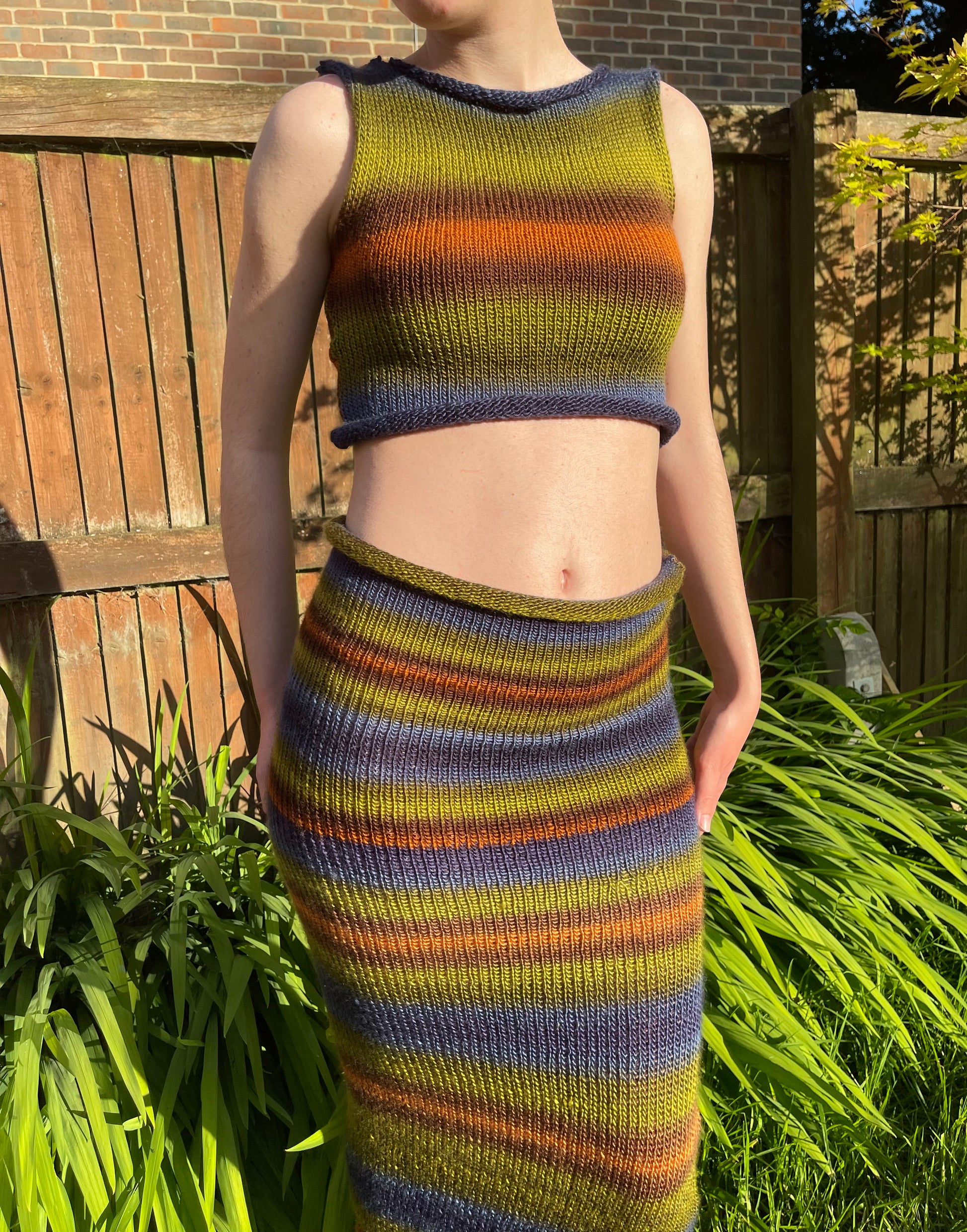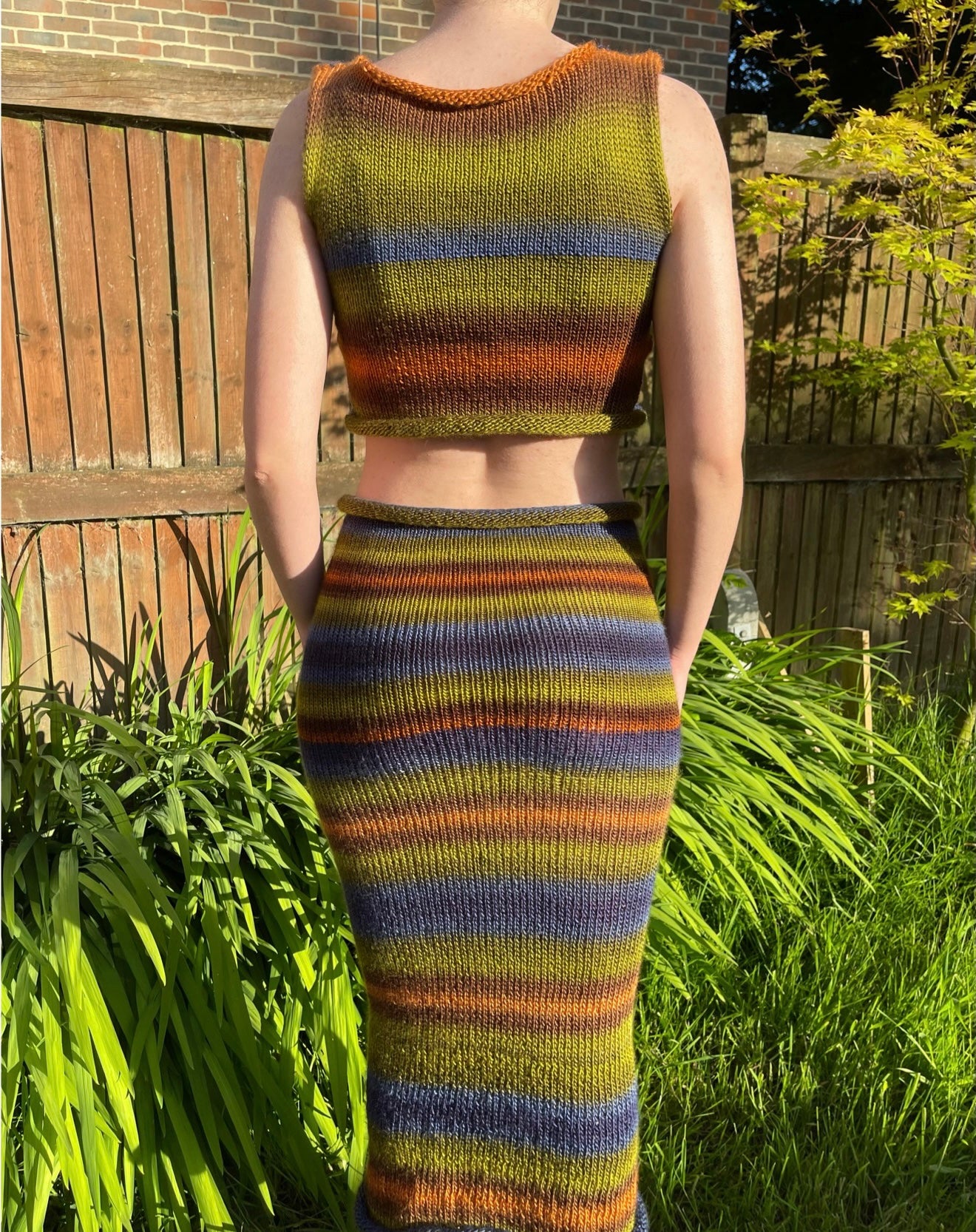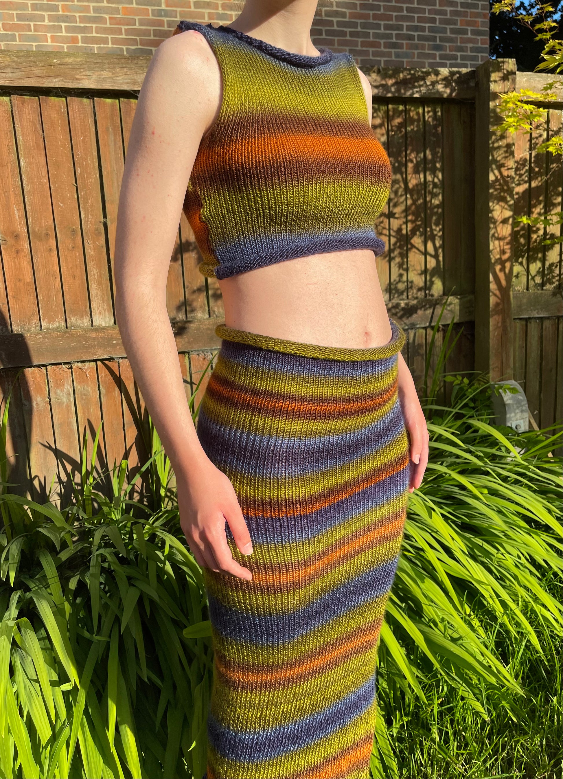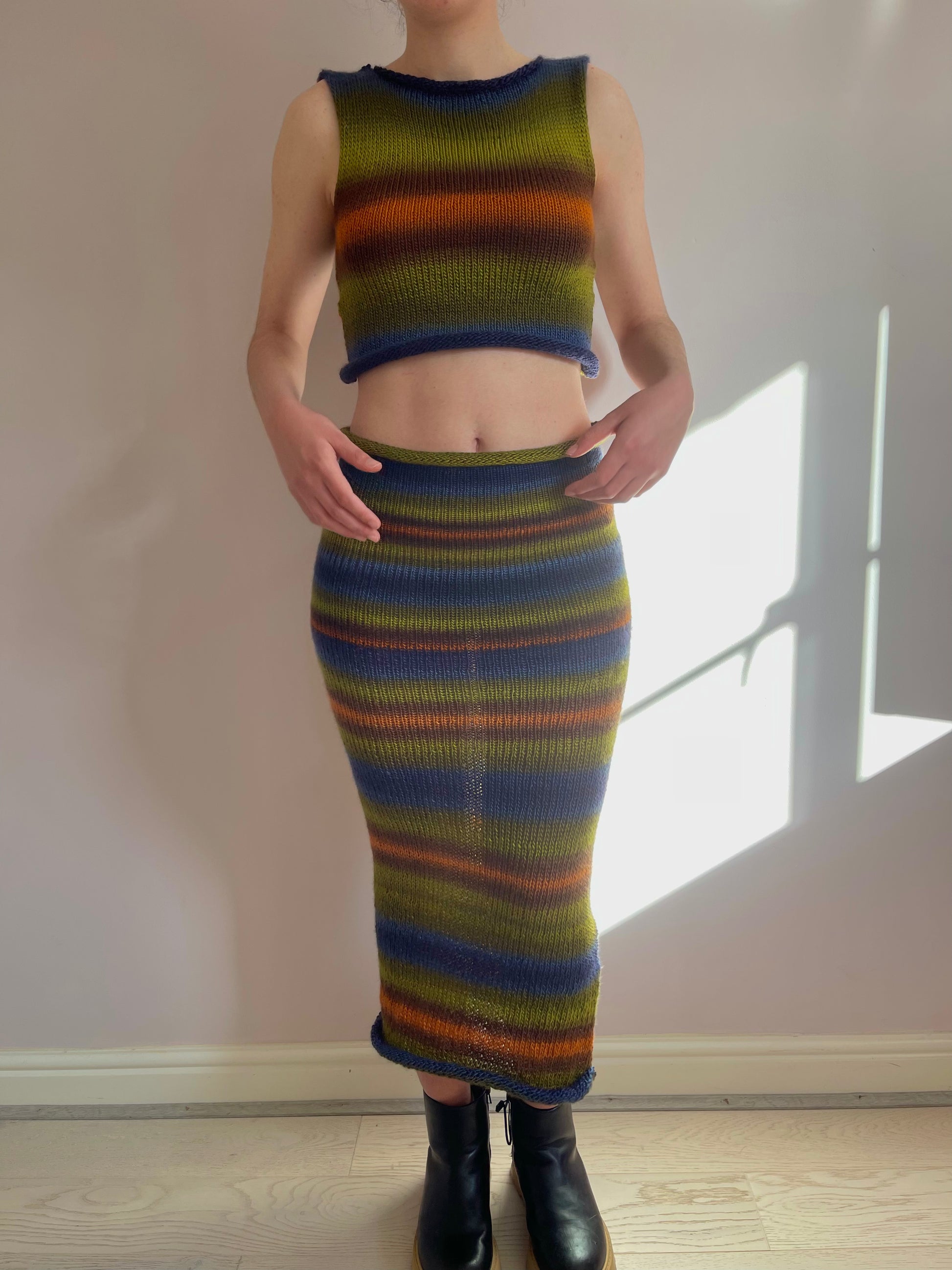 The Aspen Set - handmade knitted ombré vest and maxi skirt with side slit