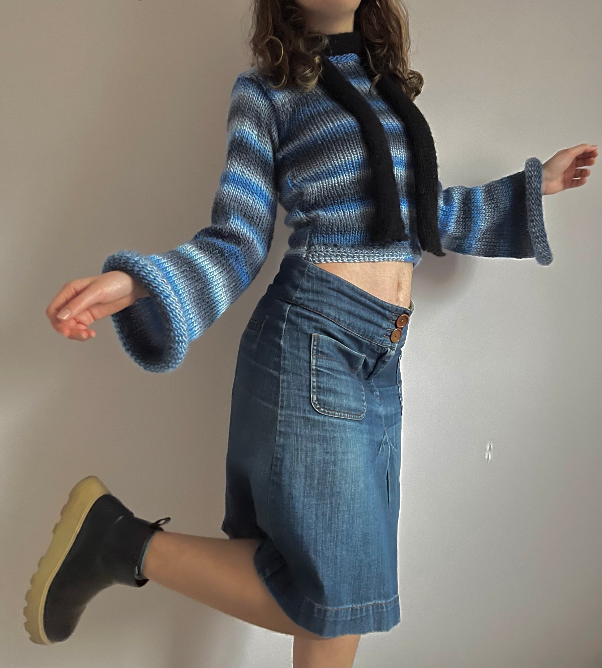 The Blue Daze Sweater - handmade knitted flared sleeve jumper