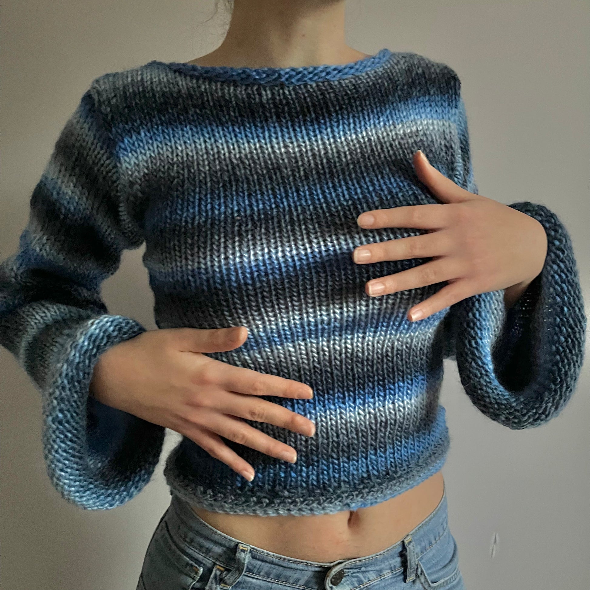 The Blue Daze Sweater <3 Handmade knitted ombré jumper with the cutest flared / bell sleeves! The most beautiful colours and the perfect statement piece