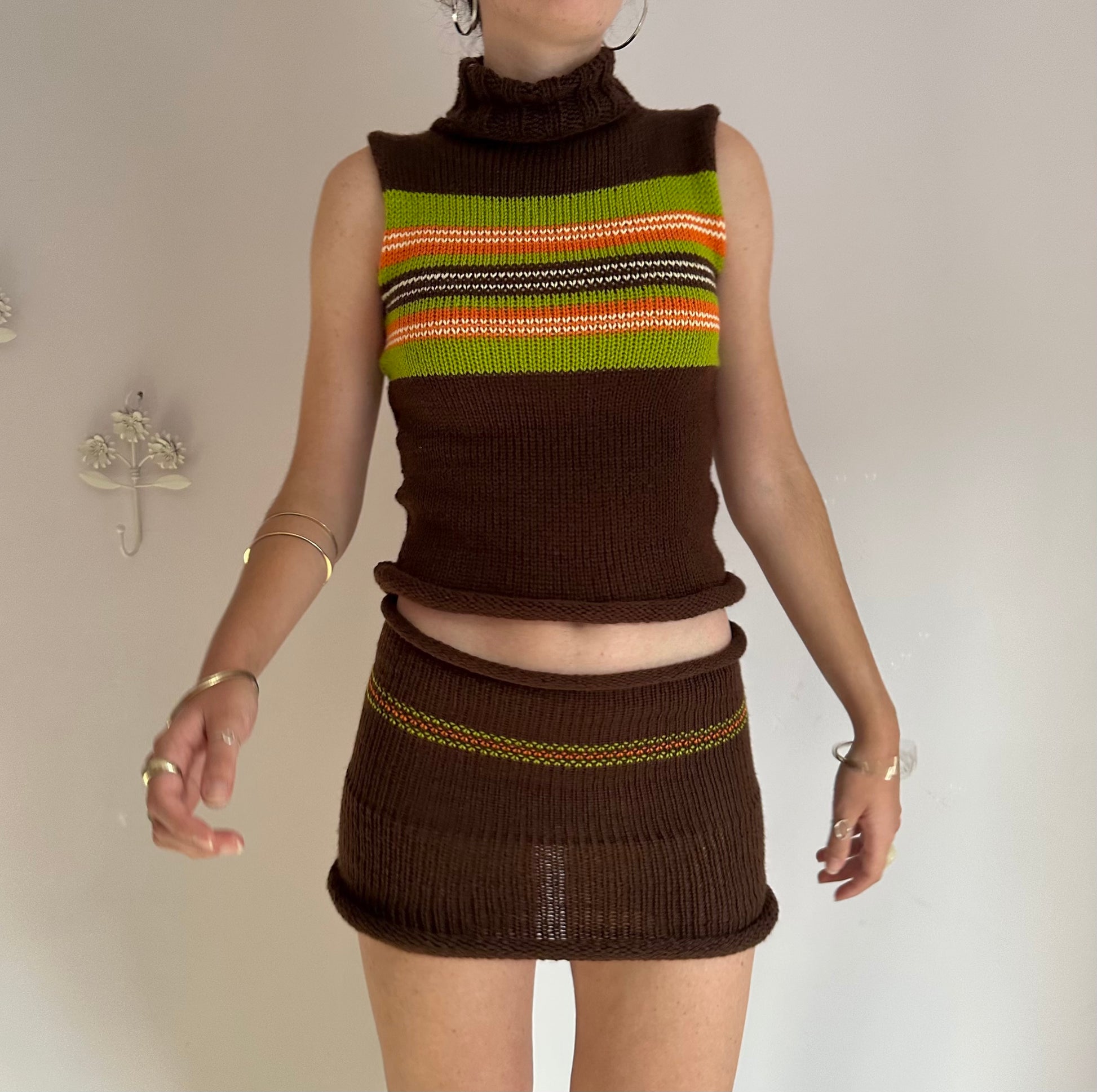 The Linea Skirt - a 70s inspired striped low waisted knit skirt ๐