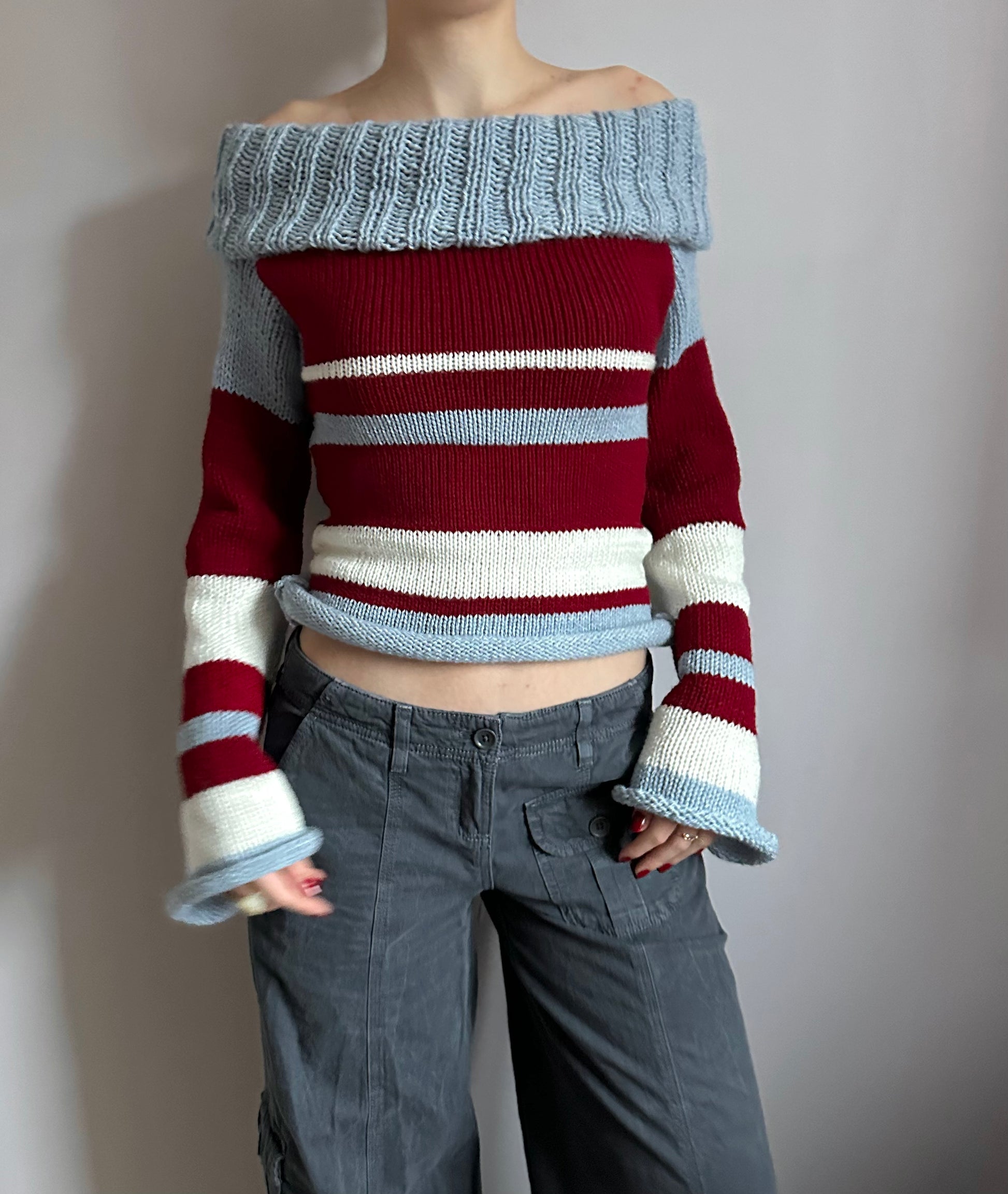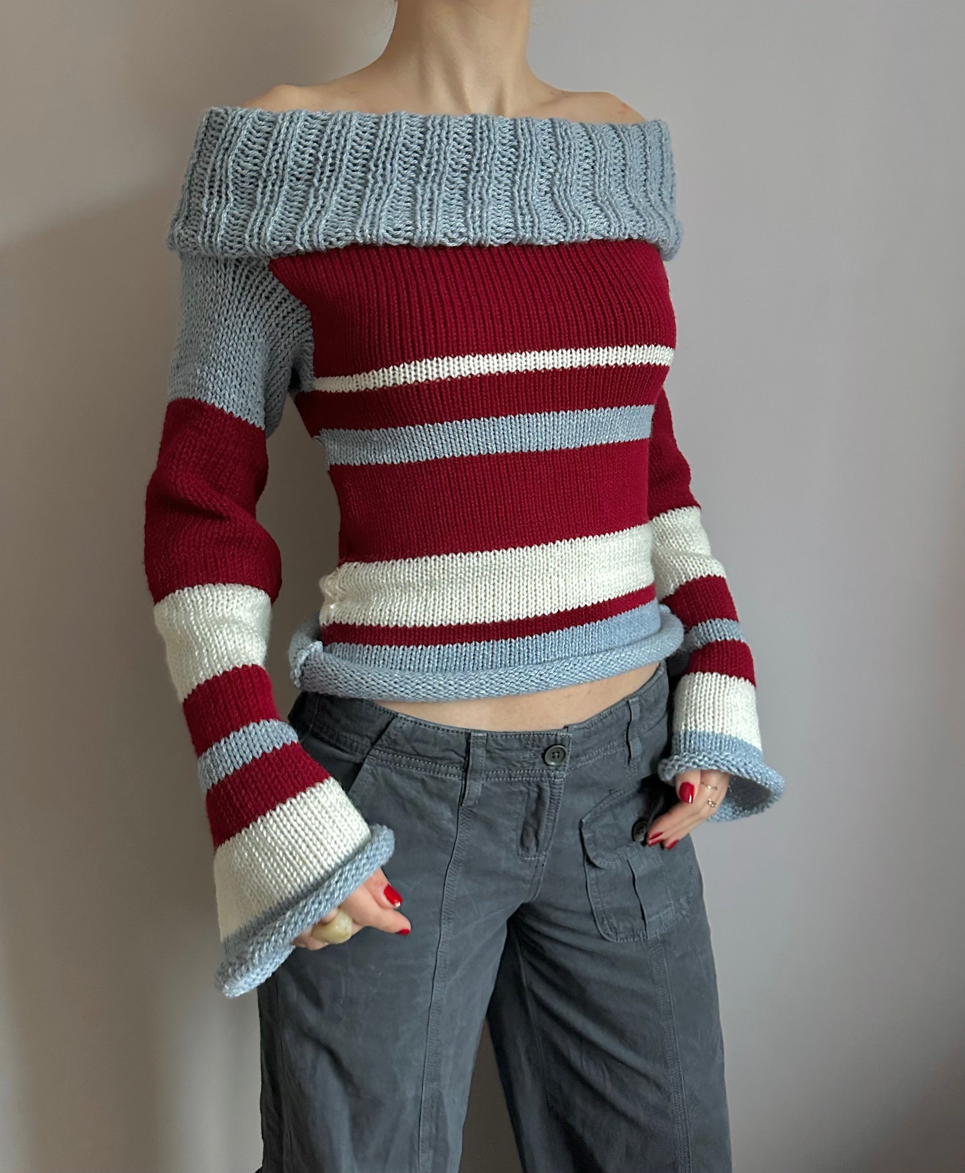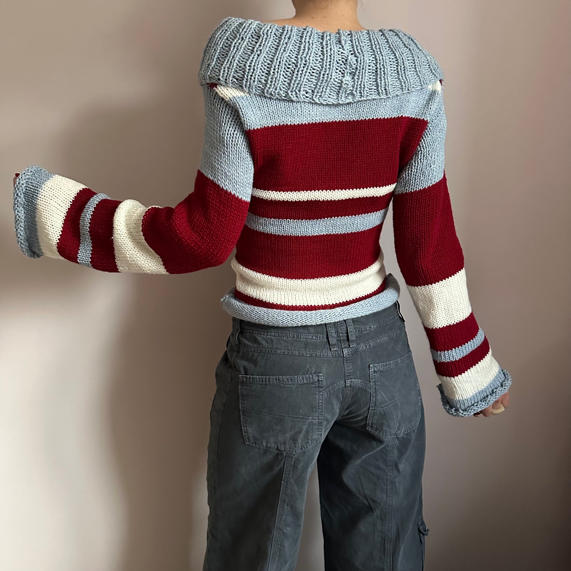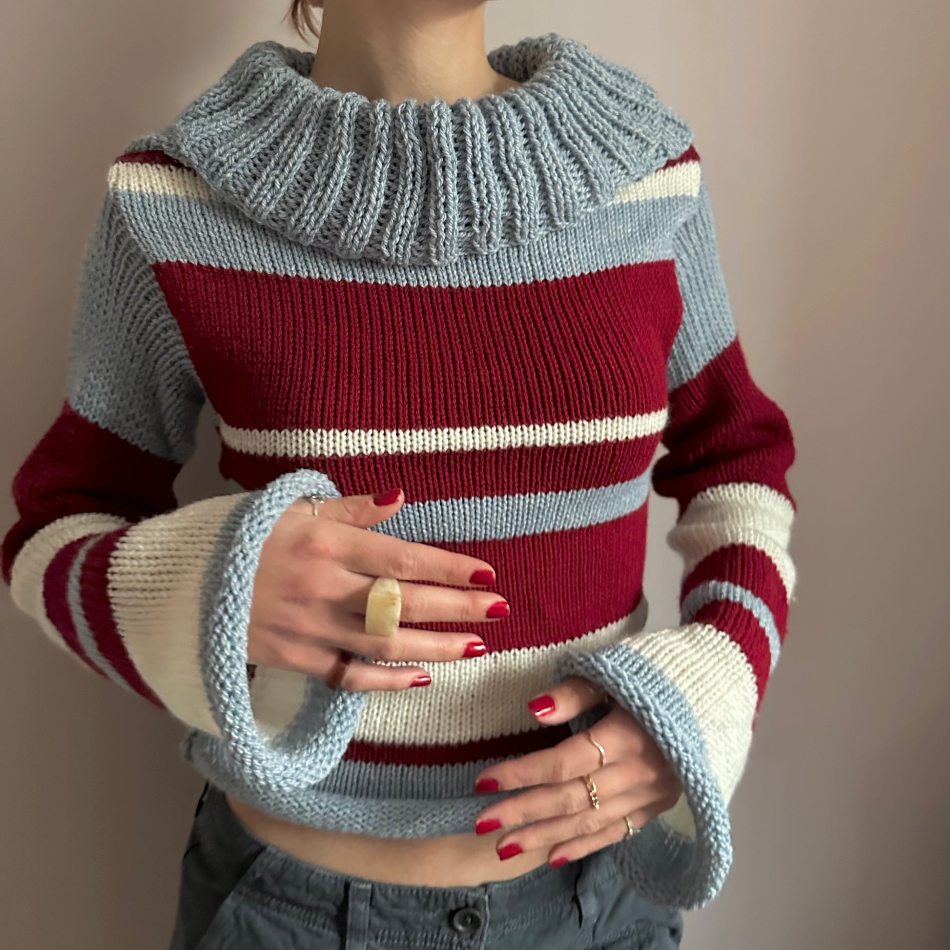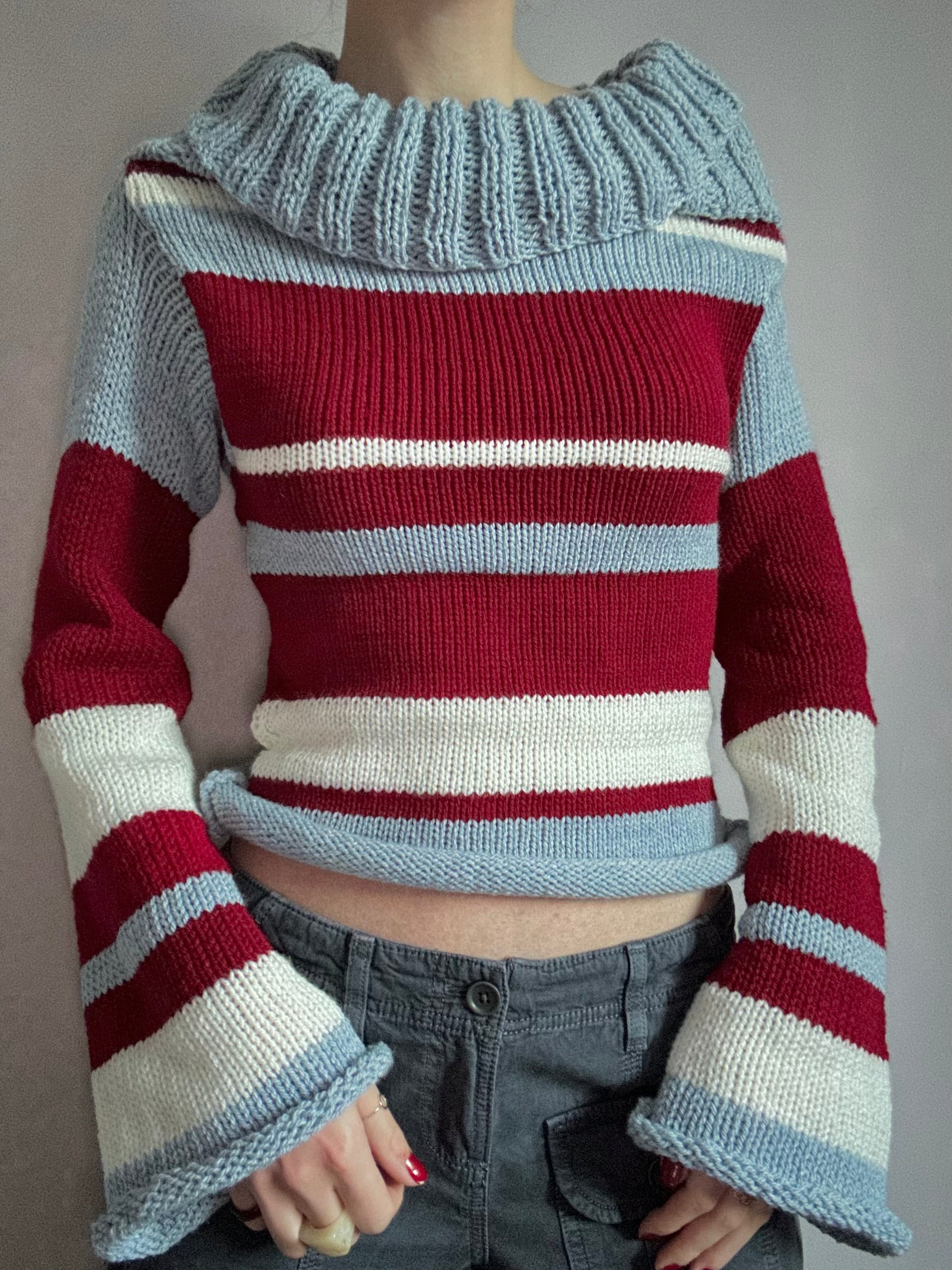 The Raya Jumper: the cutest roll neck stripy knit jumper - the neck can be worn two ways as shown! ๐