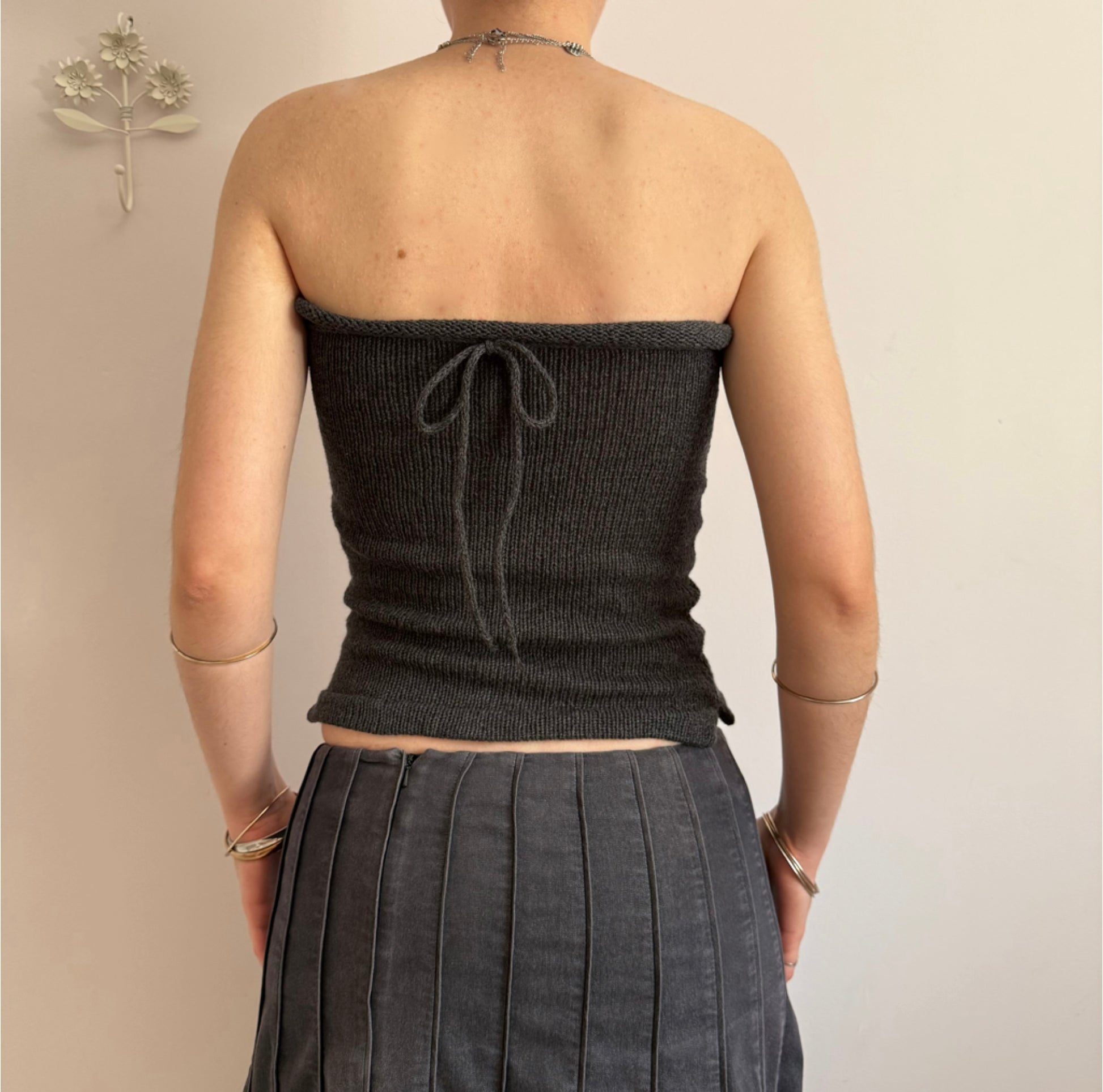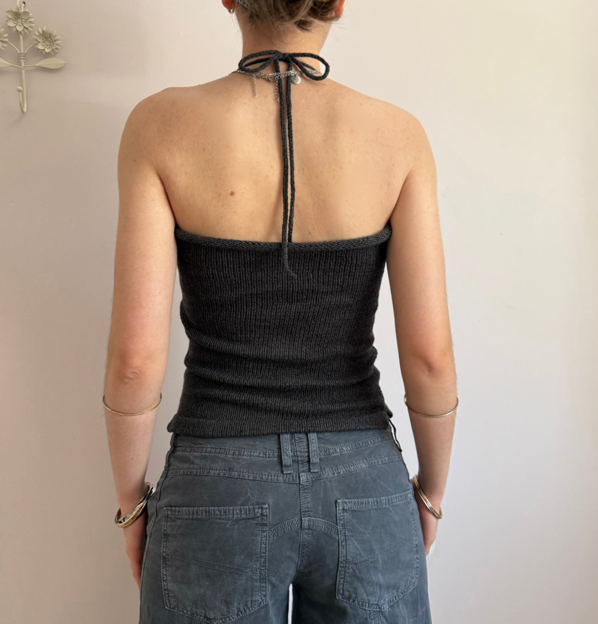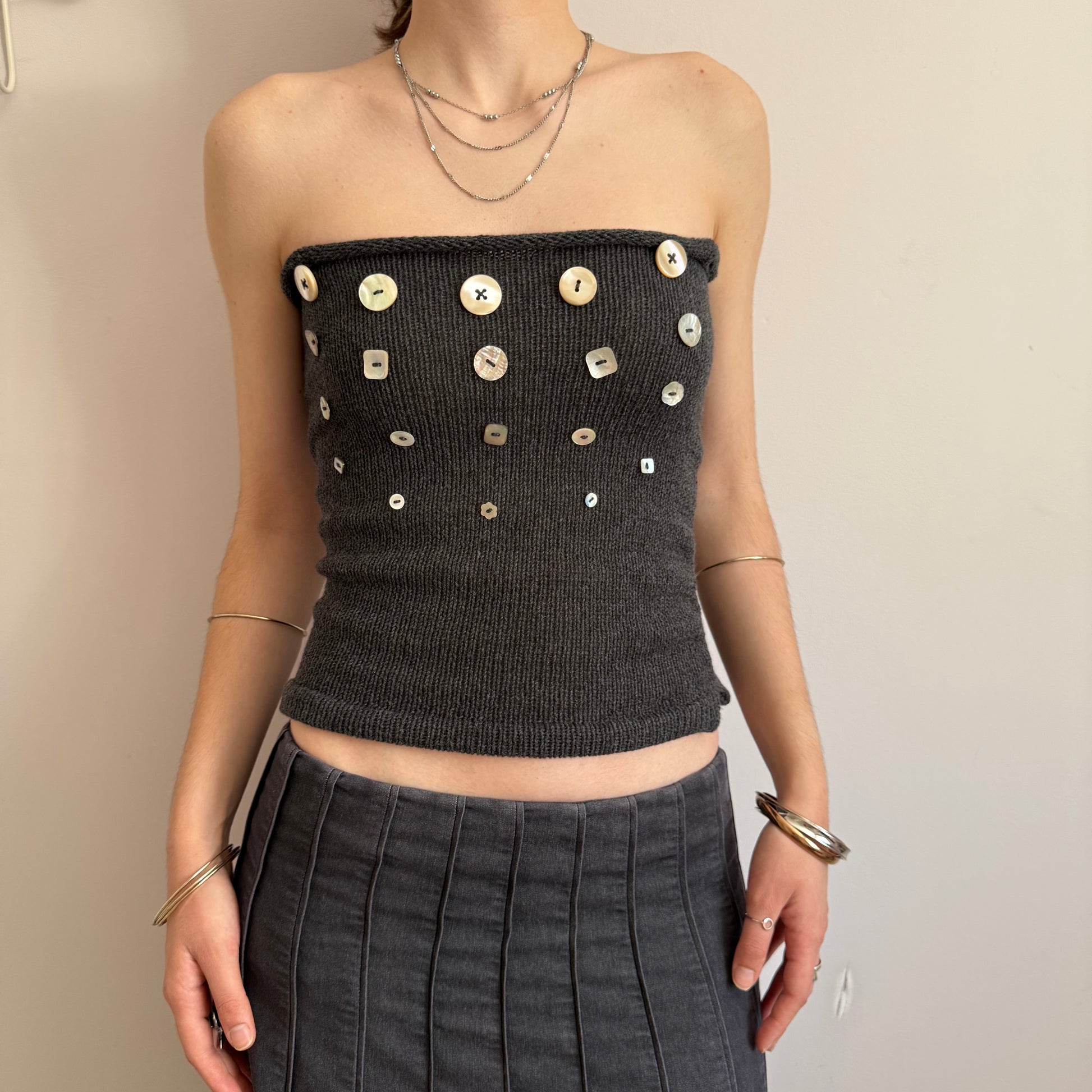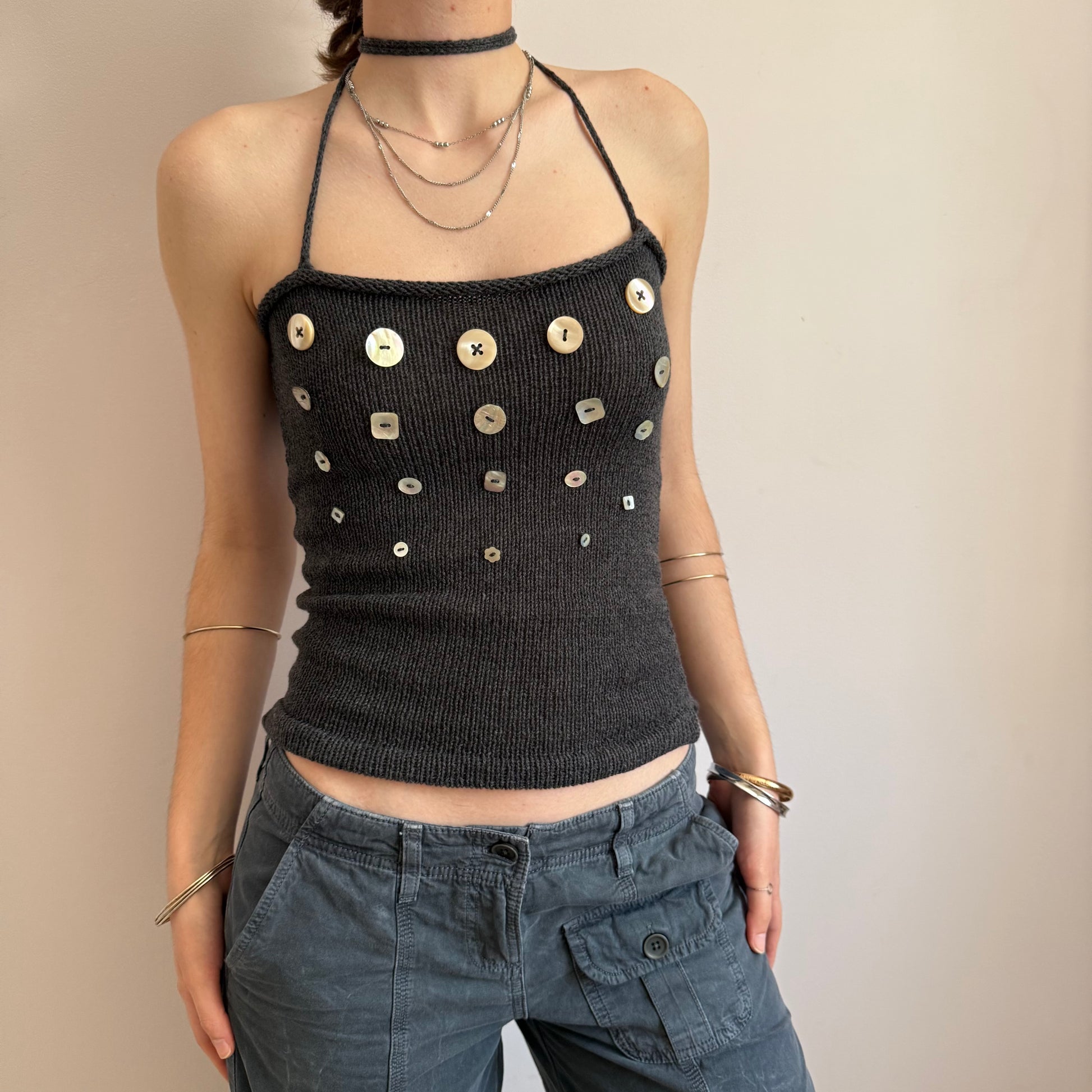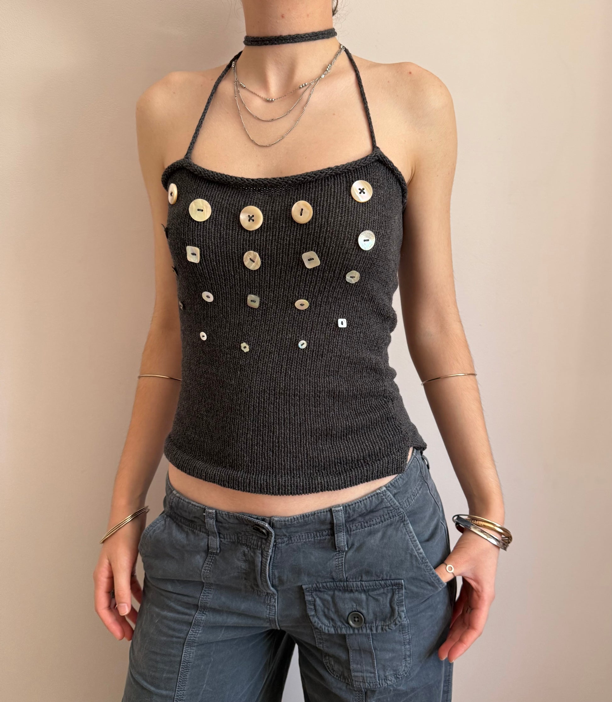 Knitted tank top in charcoal grey adorned with mother of pearl buttons 🦪